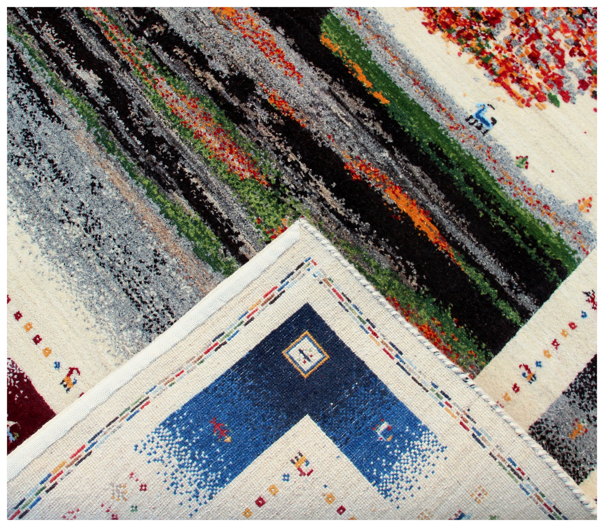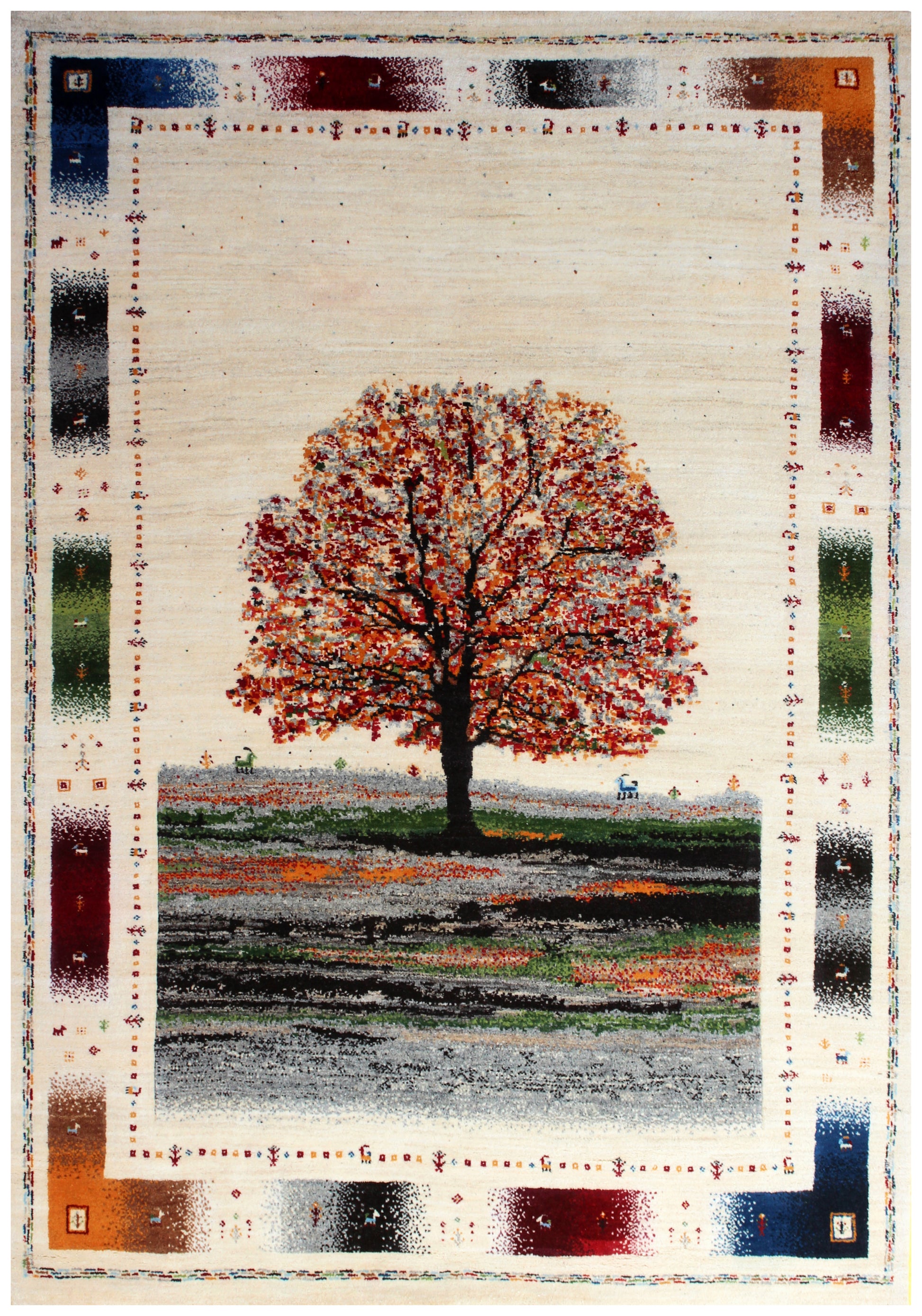 5.6x8 Gabbeh Tree of Life Hand Knotted Ivory Multi-Color Area Rug
