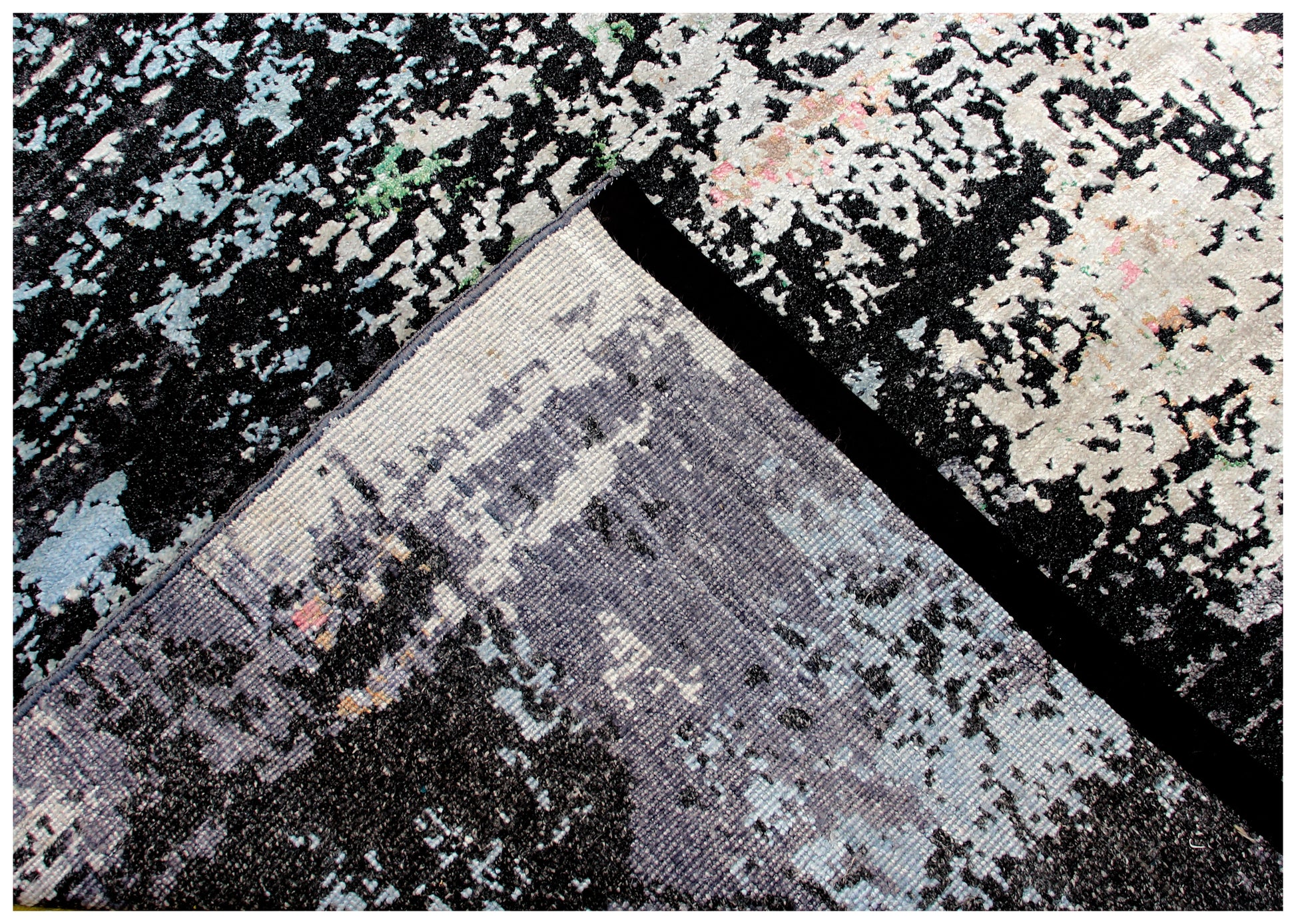 7.6x10 Turquoise Pink Grey Vintage Antique Wool Viscose Area Rug - Hand Knotted Abstract Distressed