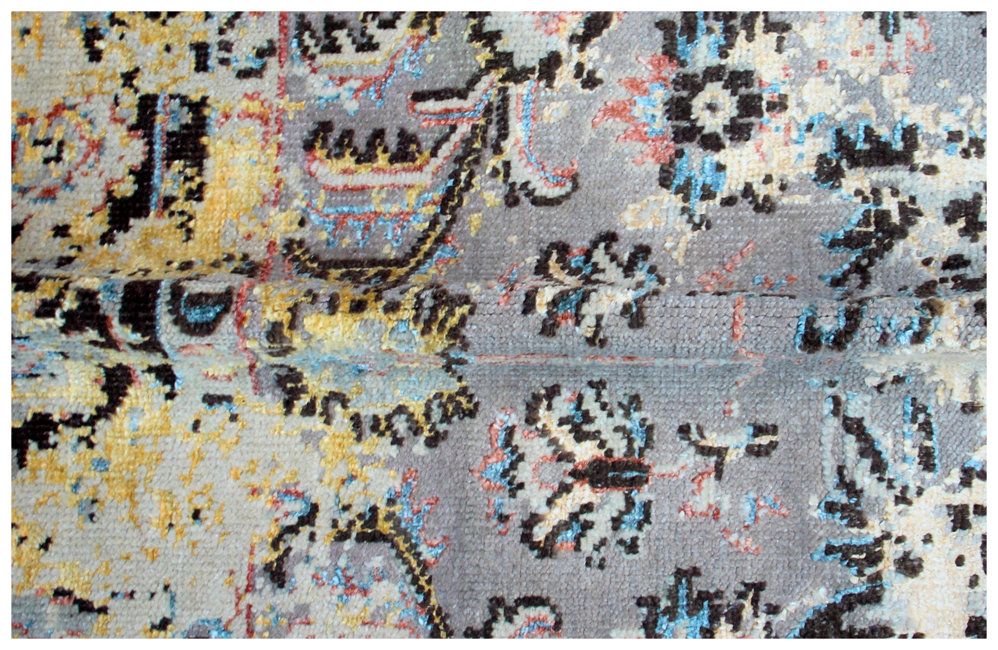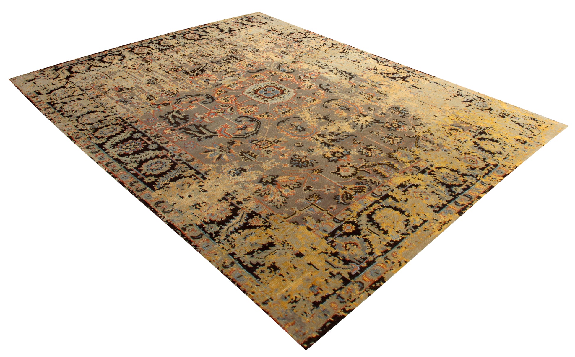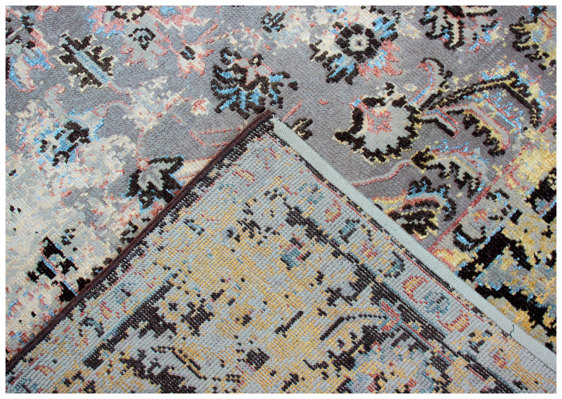 7.6x9.6 Camel Brown Grey Vintage Antique Persian Wool Viscose Area Rug - Hand Knotted Floral Medallion Distressed