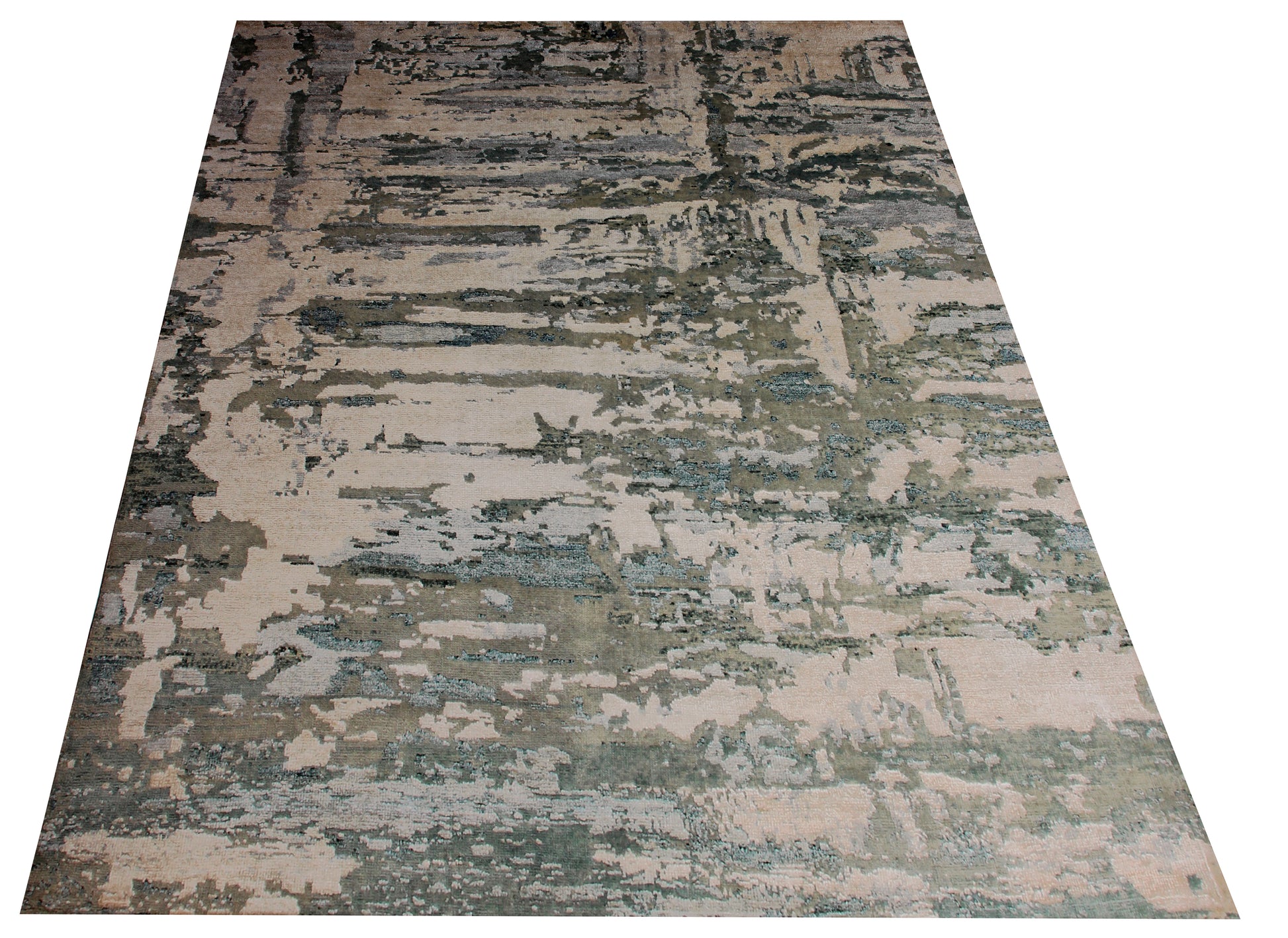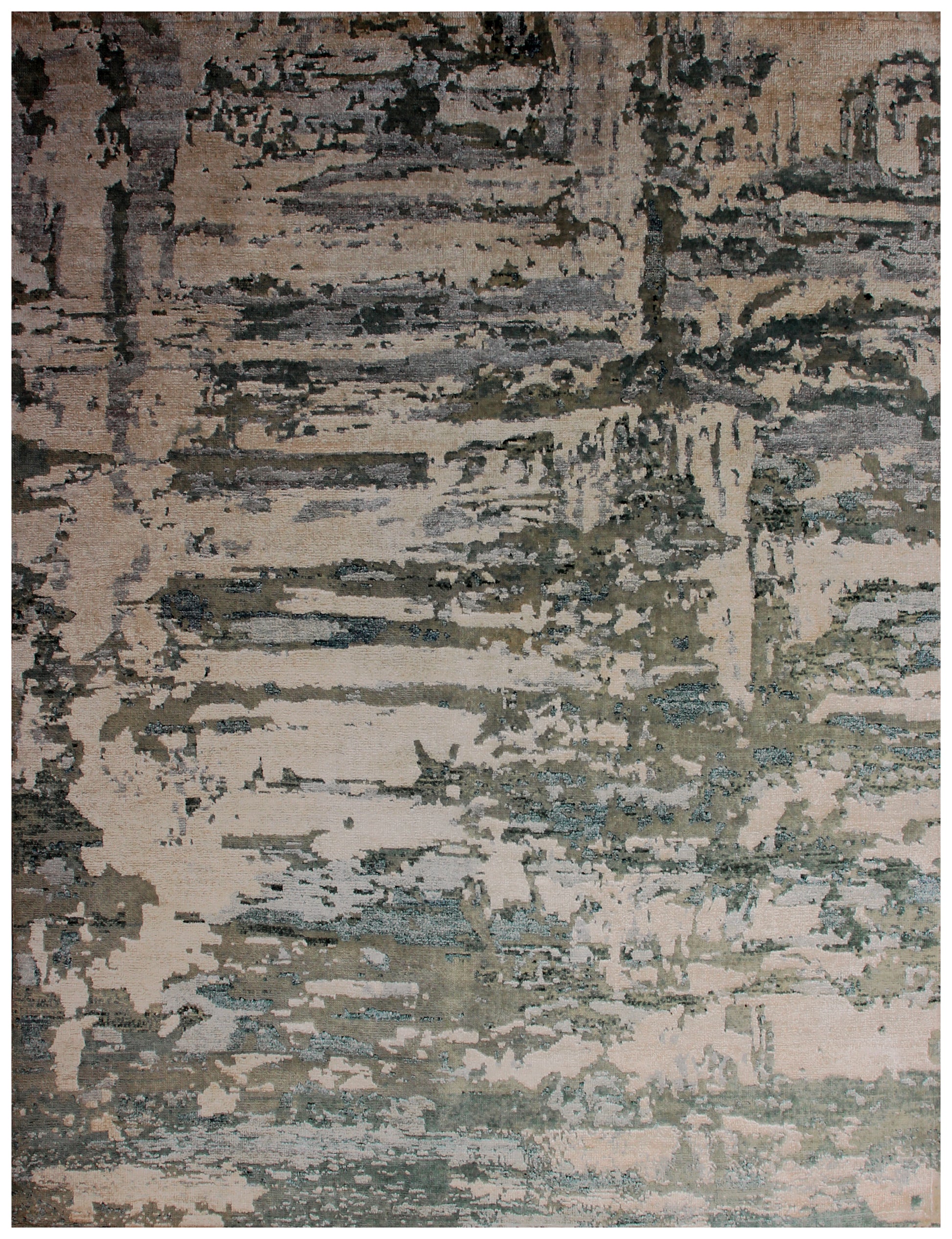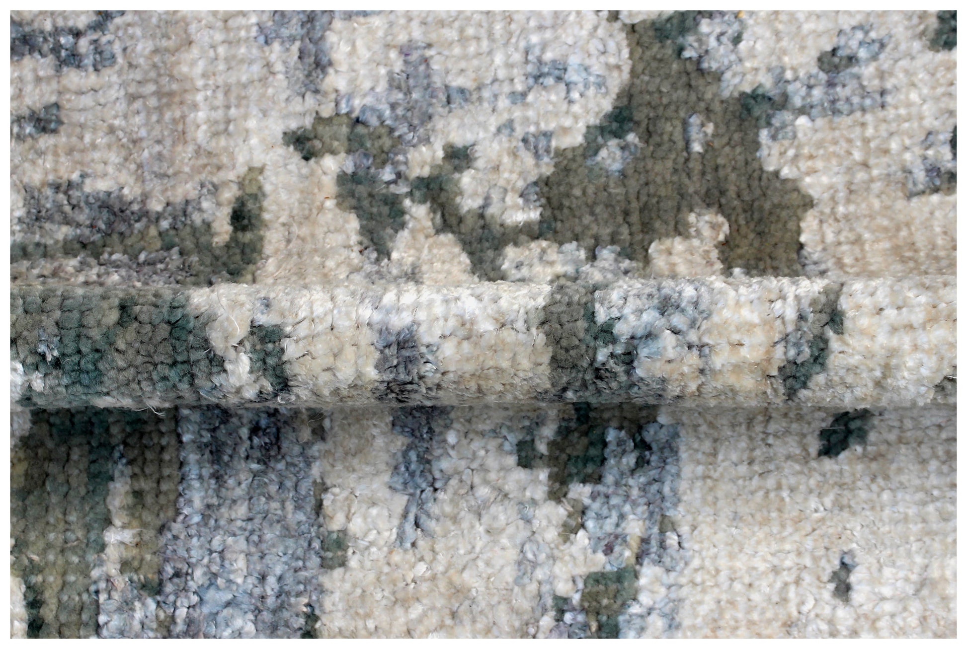 8x10 Abstract Distressed Vintage Antique Wool Viscose Hand Knotted Area Rug - Beige Grey Teal Green