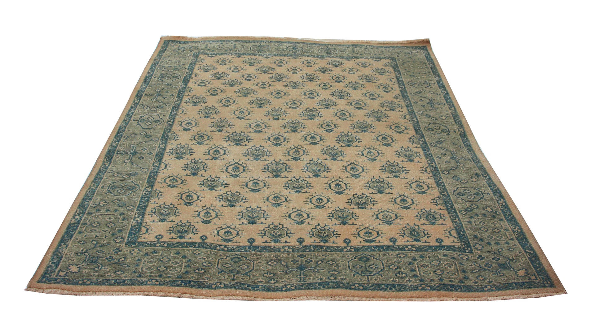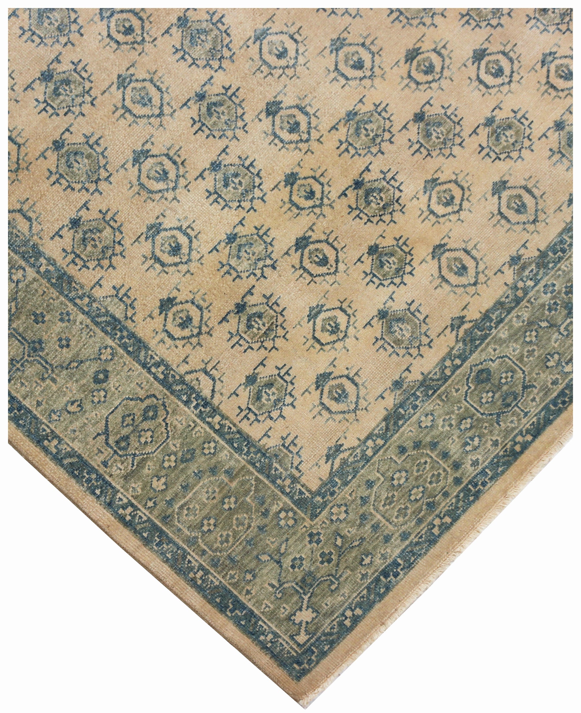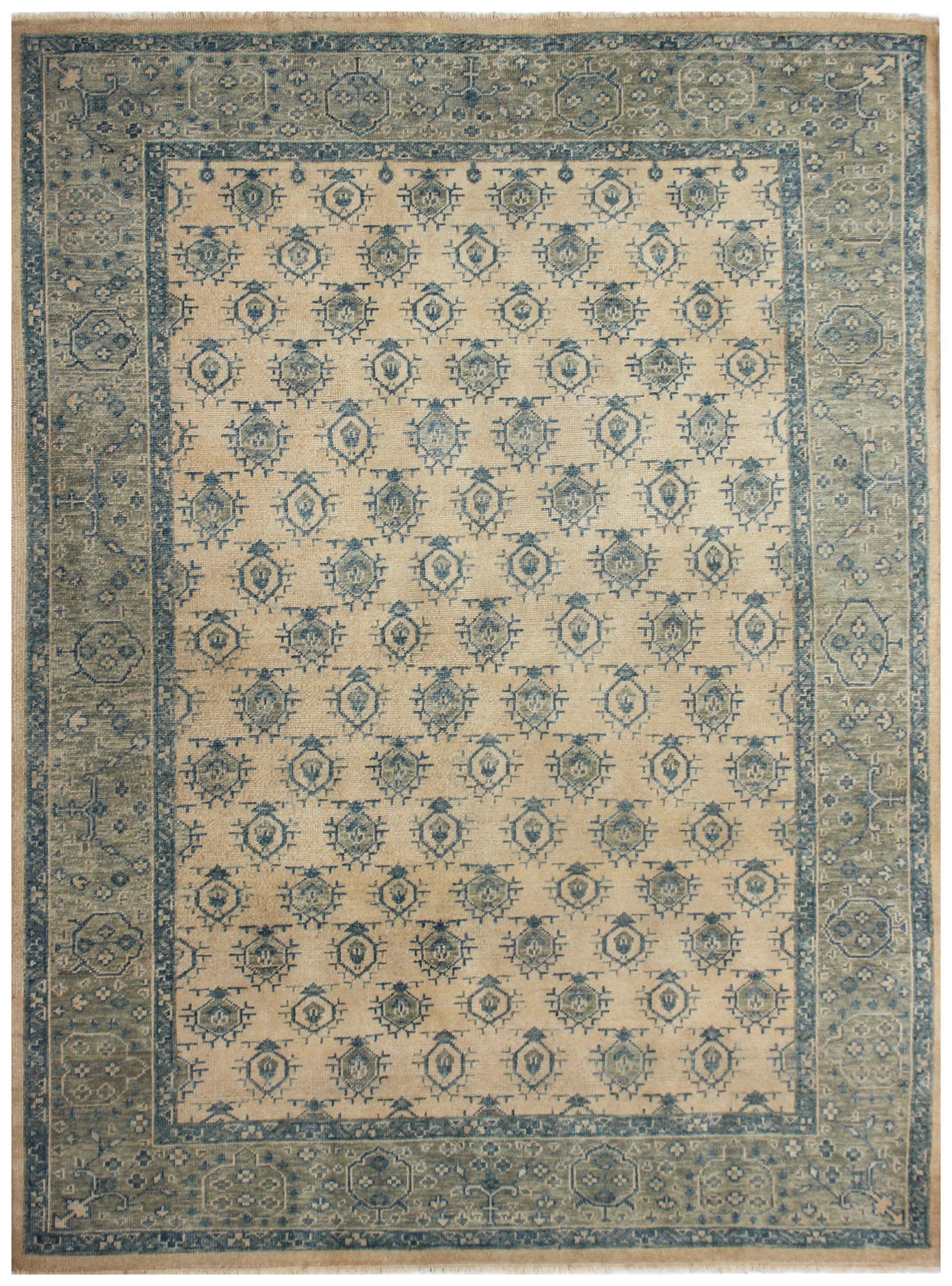 8x10 Beige Blue Wool Area Rug - Hand Knotted Oriental Geometric Style