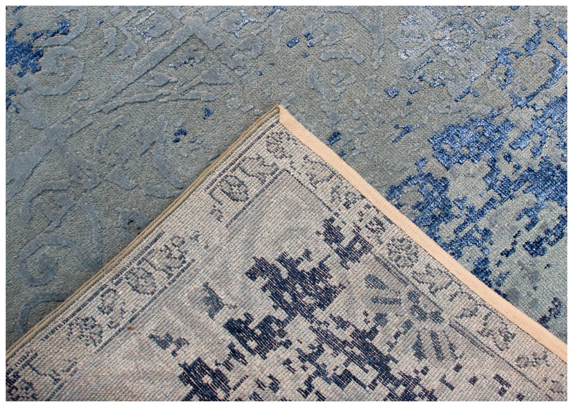 8x10 Light Blue Grey Navy Hand Knotted Wool Viscose Area Rug - Vintage Antique Abstract Distressed