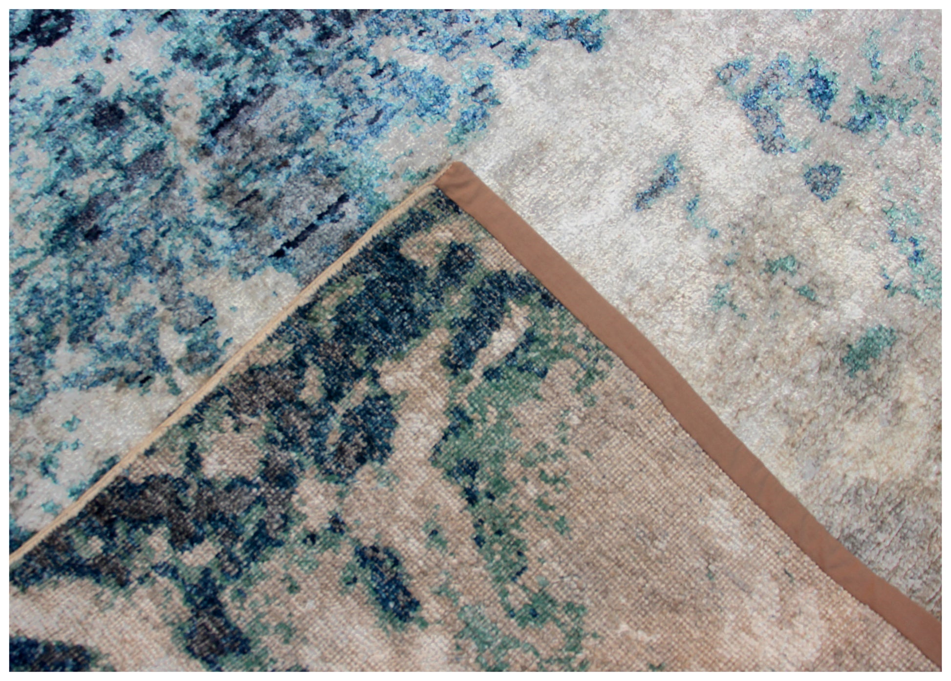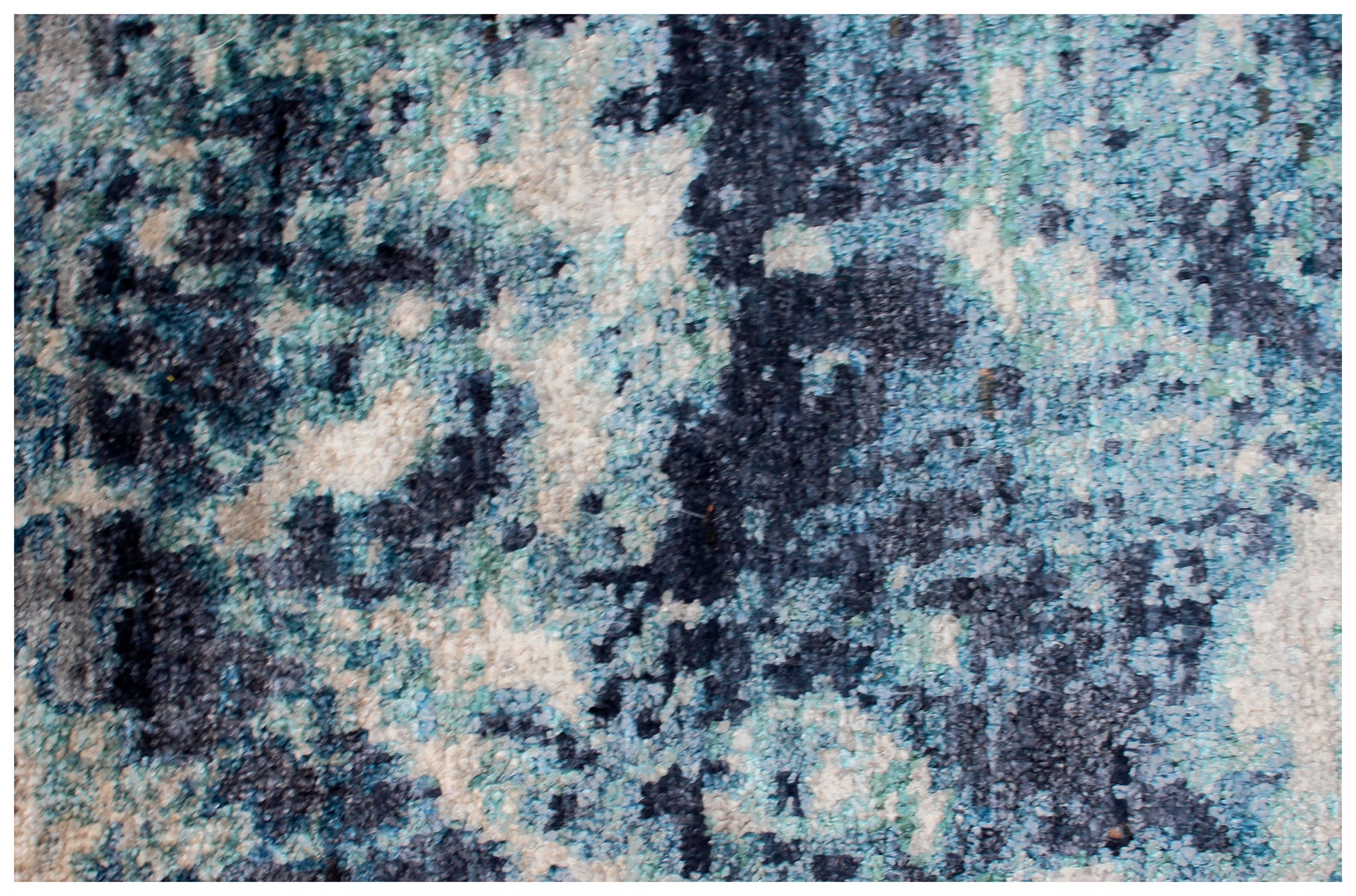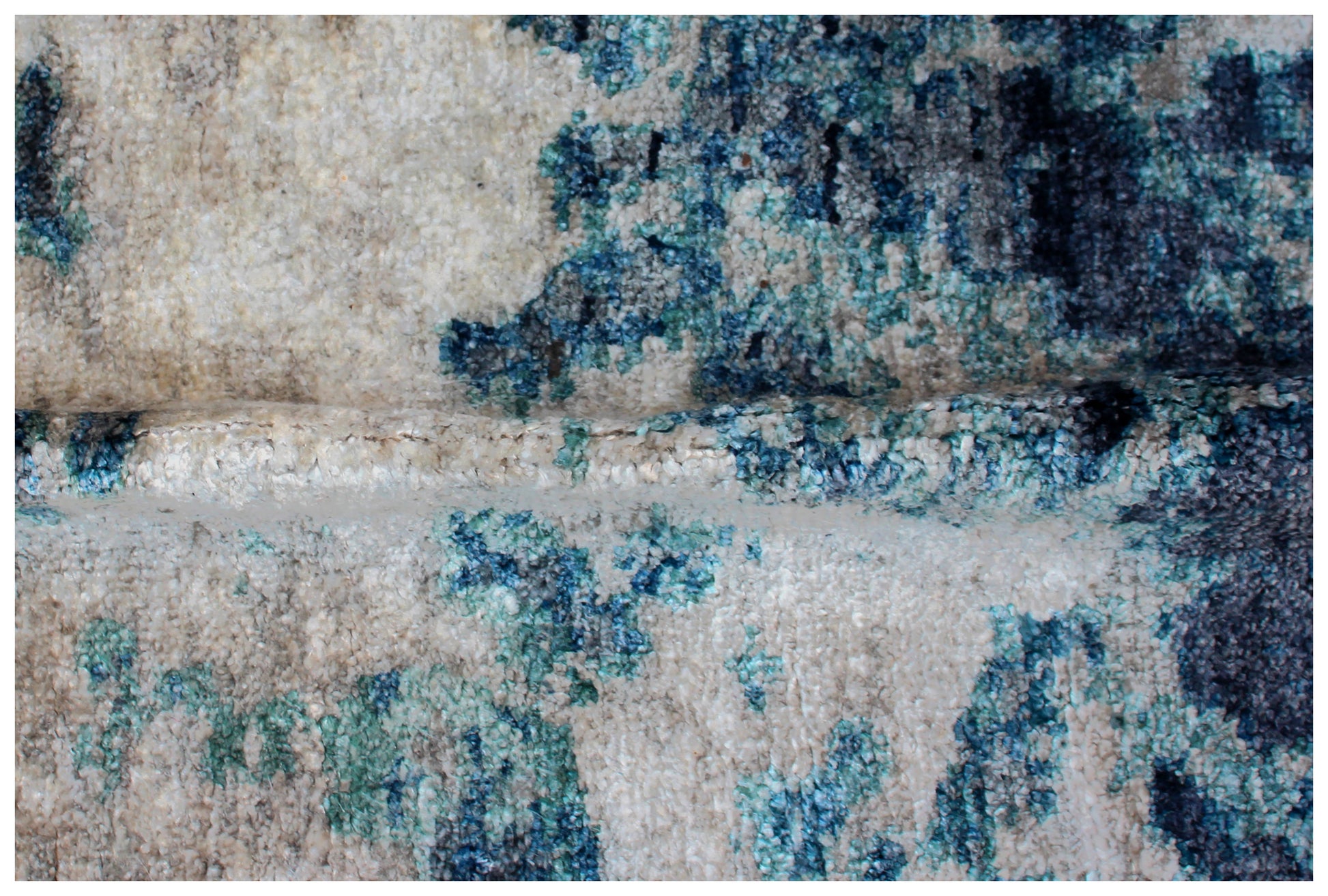 Abstract Distressed Hand Knotted Vintage Antique 8x10 Wool Viscose Area Rug - Grey Blue Teal Beige