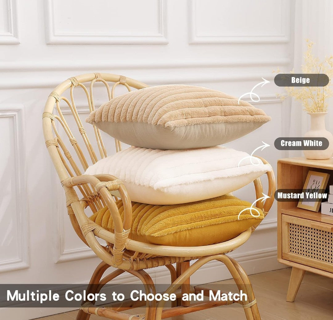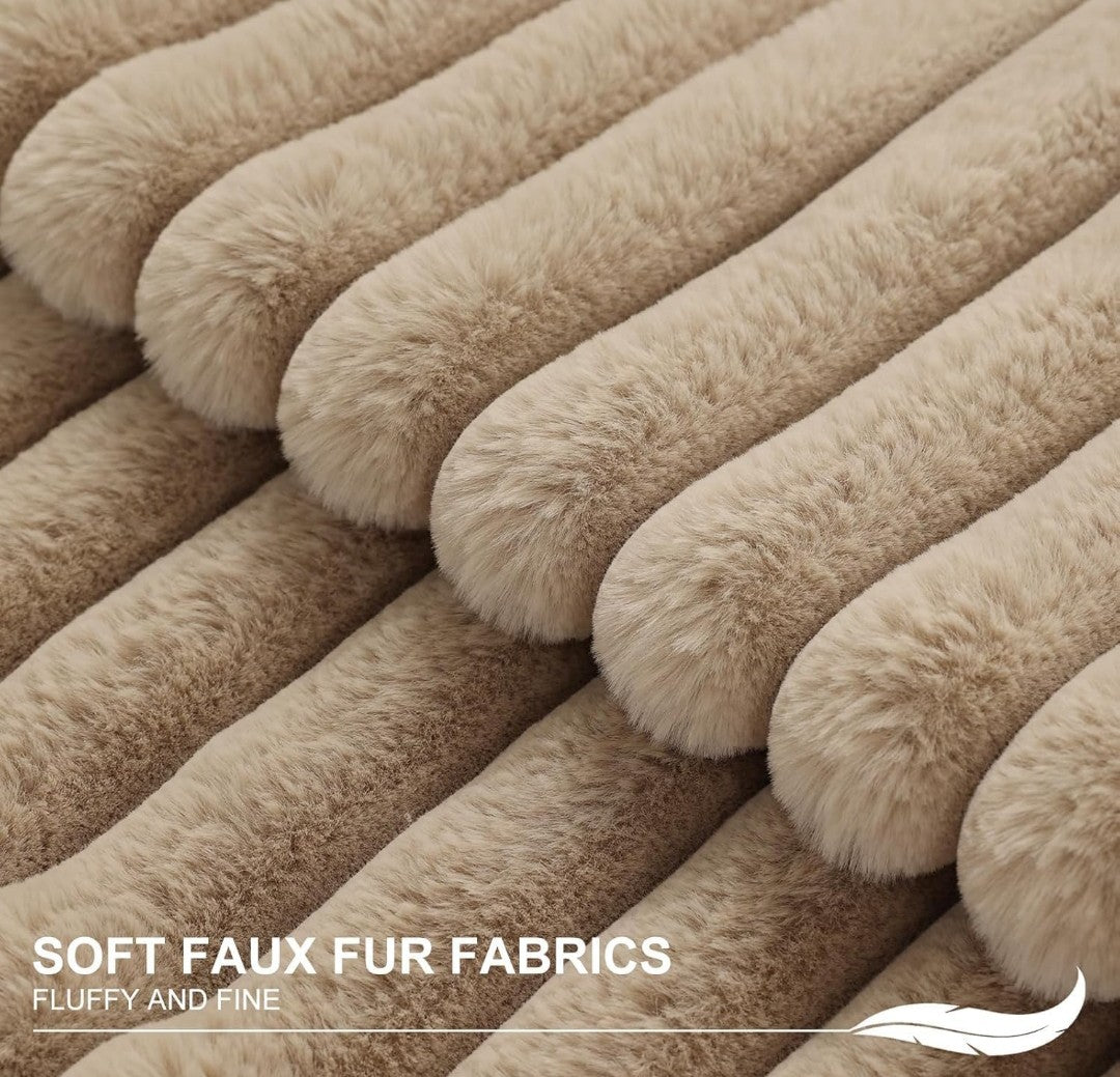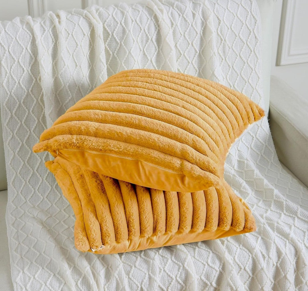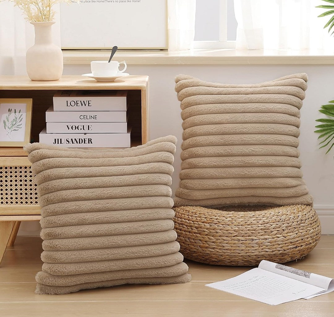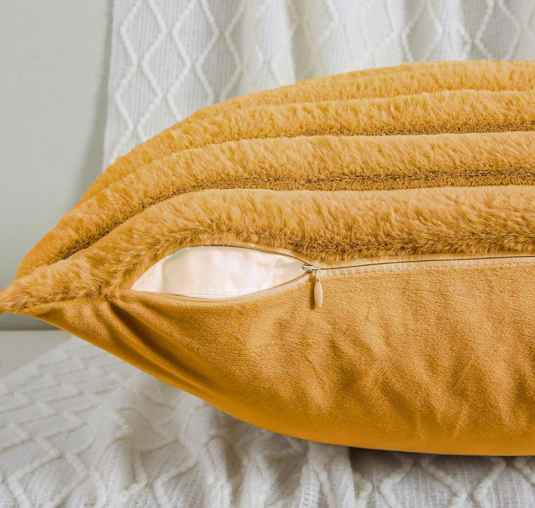 AEROHAVEN Faux Rabbit Fur Striped Throw Pillow Covers Brown Velvet Cushion Covers 16x16 Inch (2pcs)