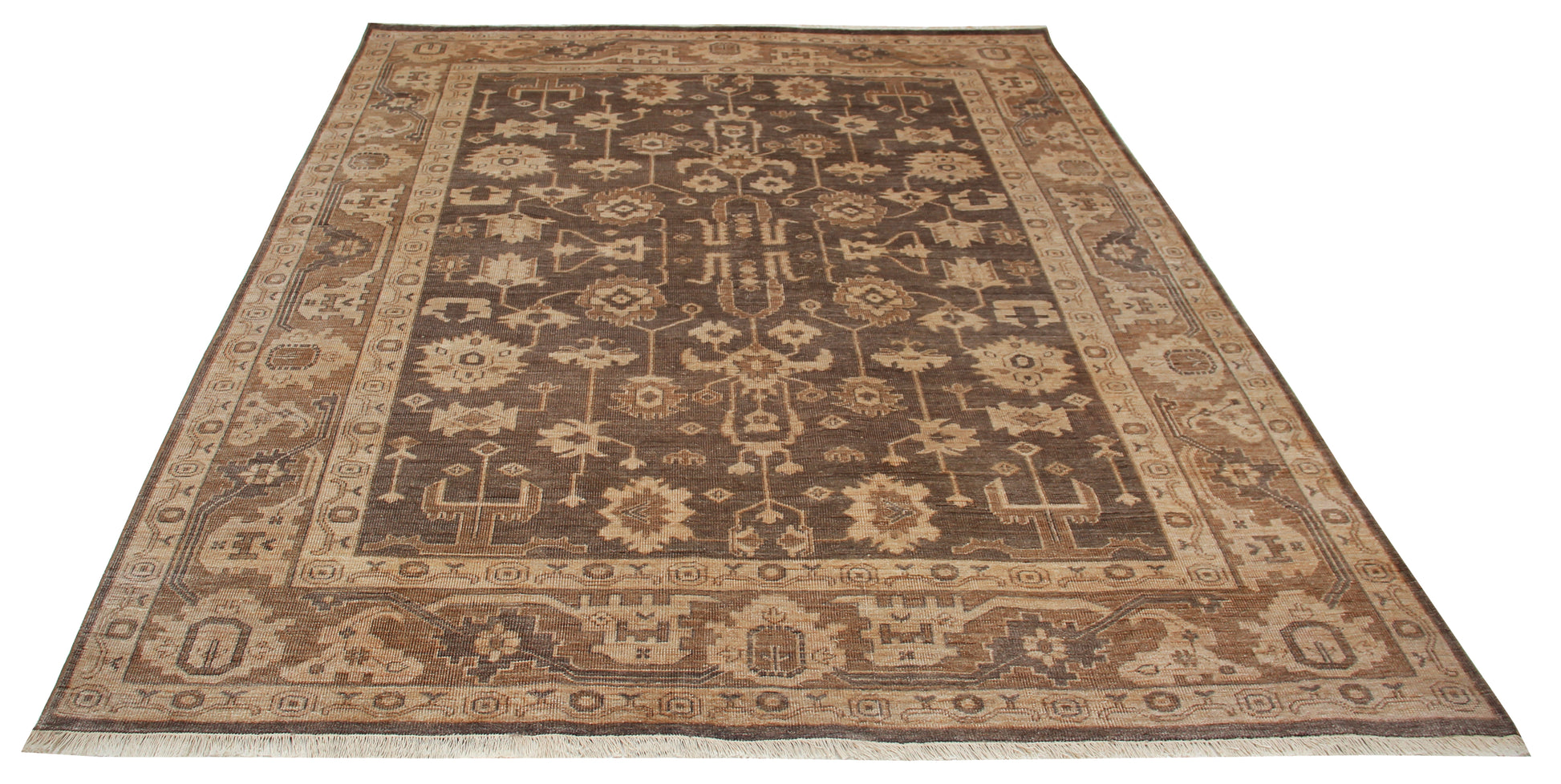 Antique Style Vintage Look Oushak Floral Hand Knotted Brown Beige 8x10 Wool Area Rug