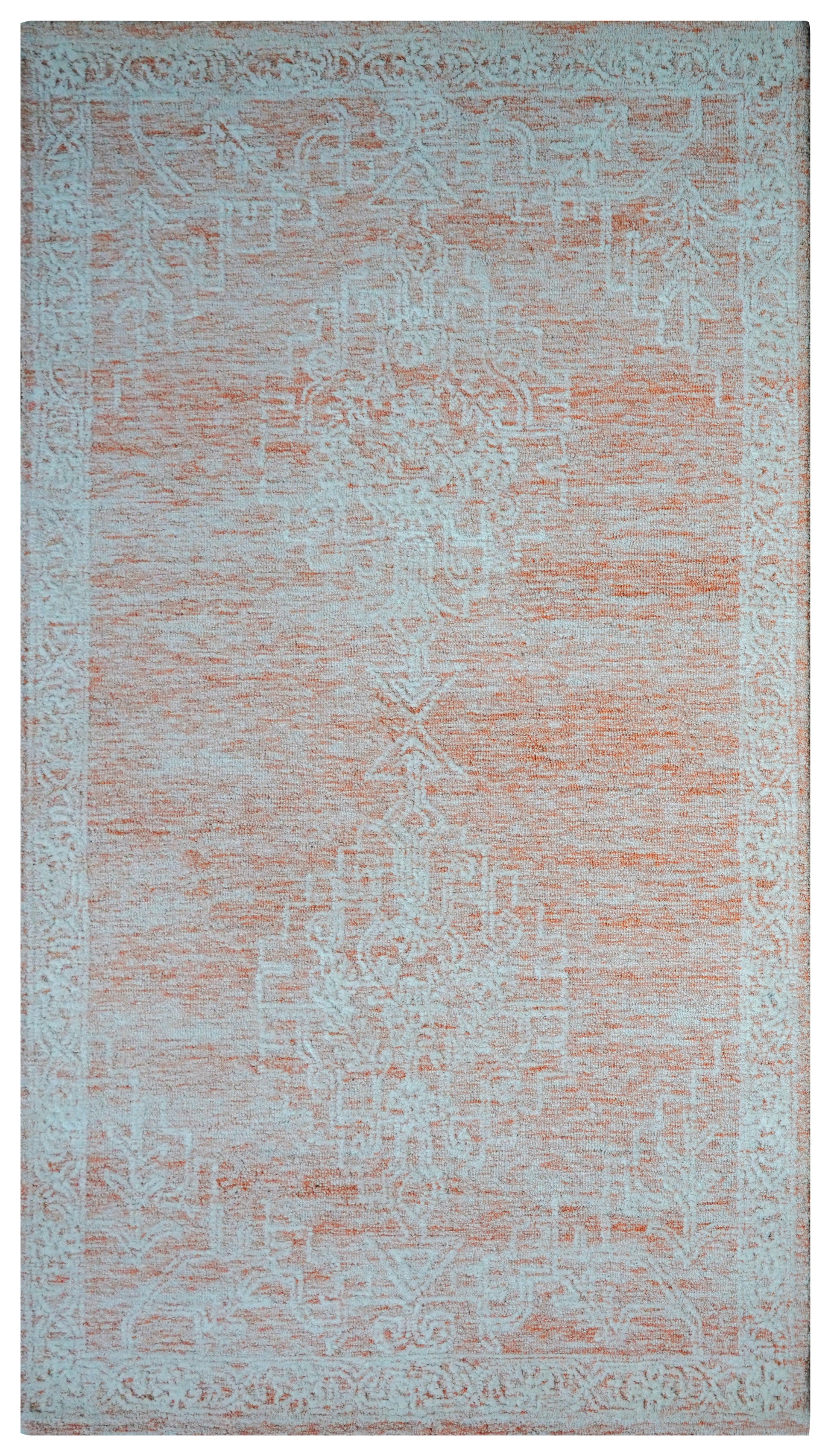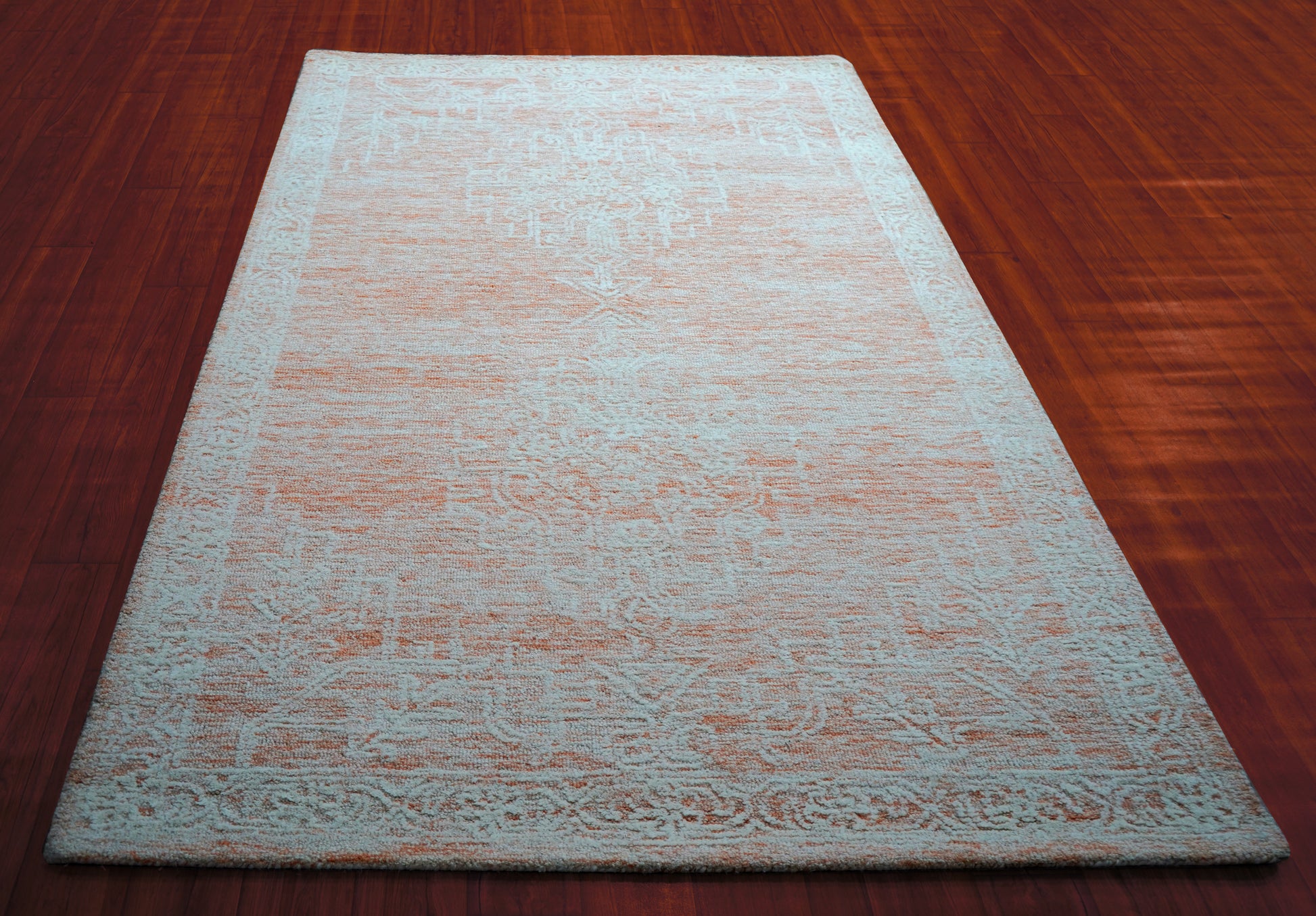 Aqua Beige Pink Vintage Floral Distressed Hand Tufted Wool Area Rug - Cut Pile Shabby Chic Custom Sizes