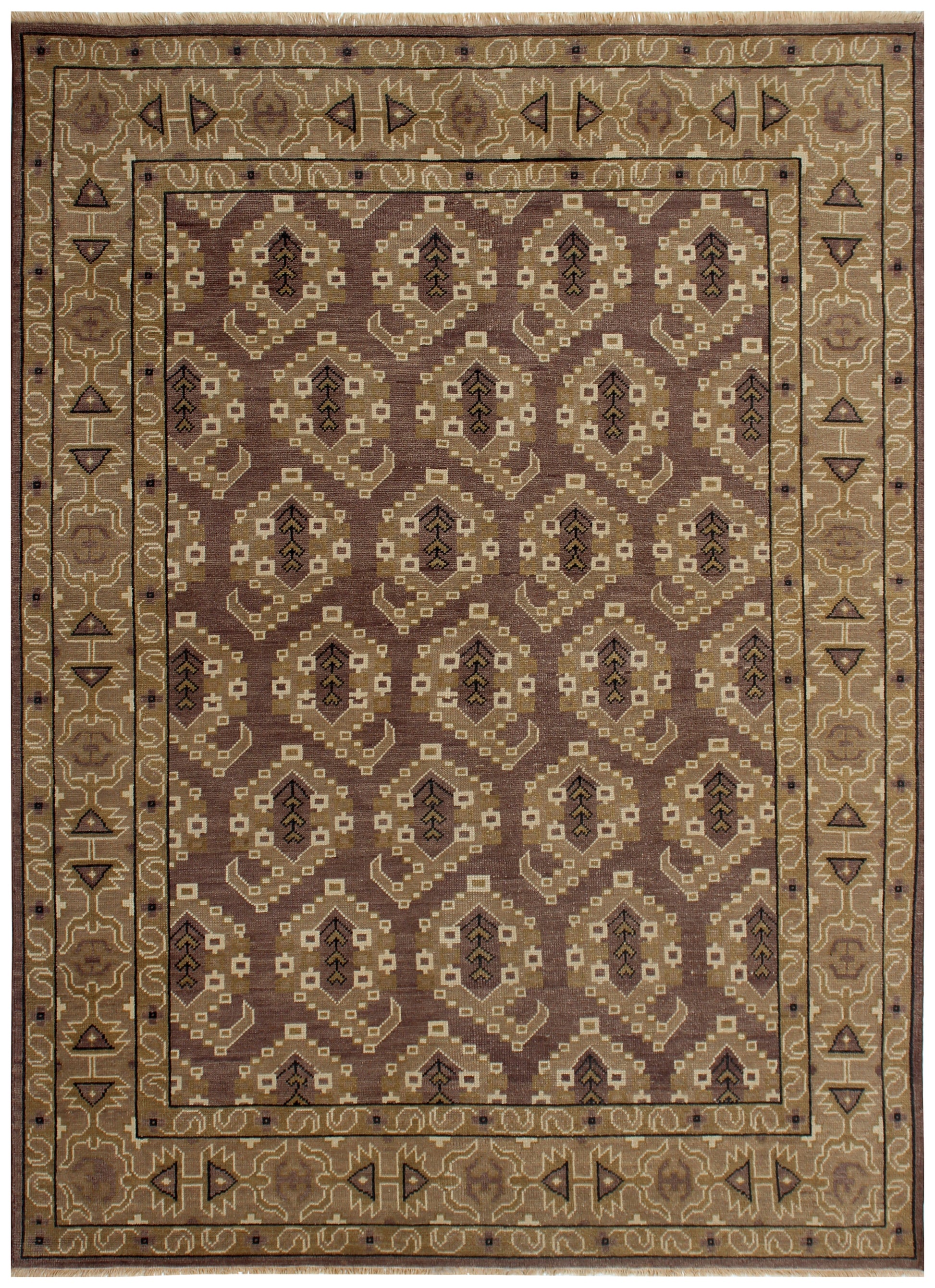 Beige Brown Gold 8x10 Hand Knotted Wool Area Rug - Vintage Antique Turkmen Bokhara Tribal