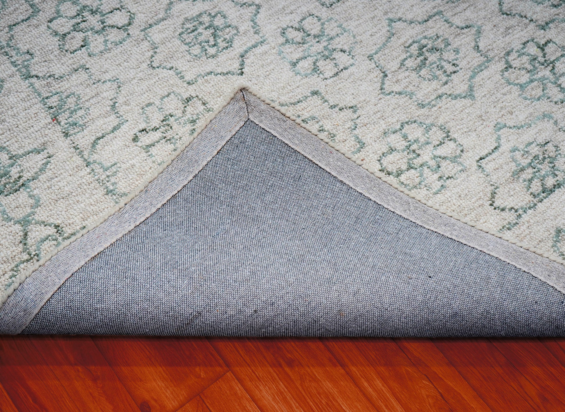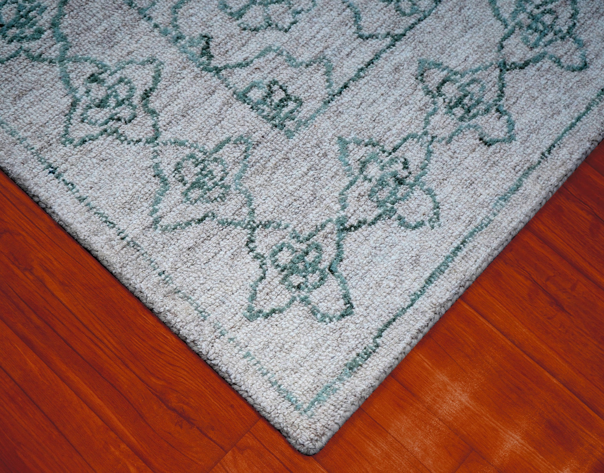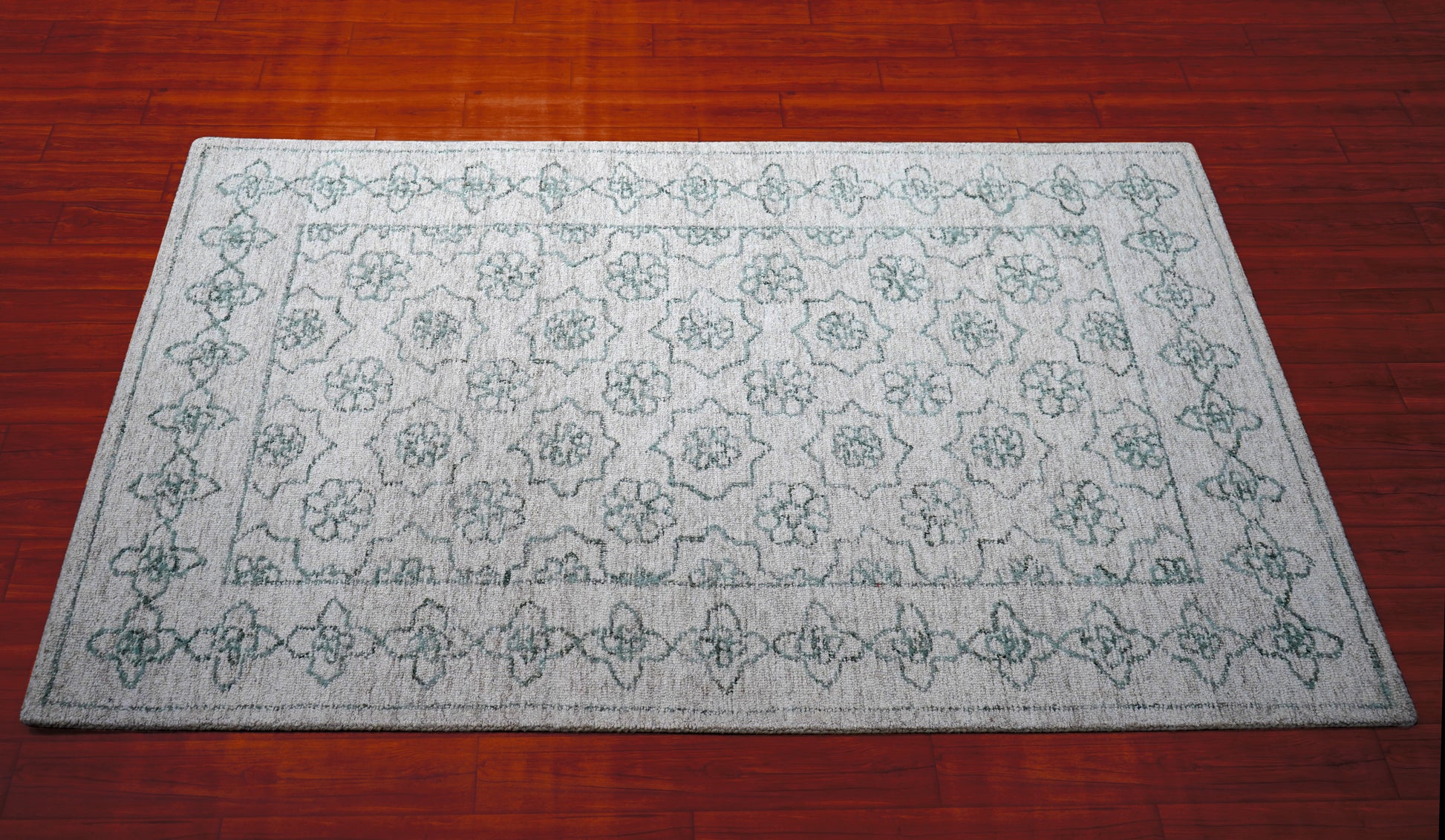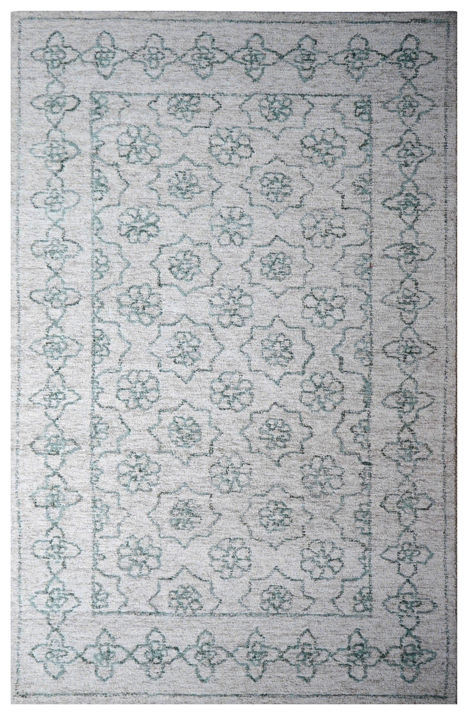 Cut Pile Hand Tufted Wool Area Rug - Mint Green Ivory Vintage Floral Distressed Custom Sizes