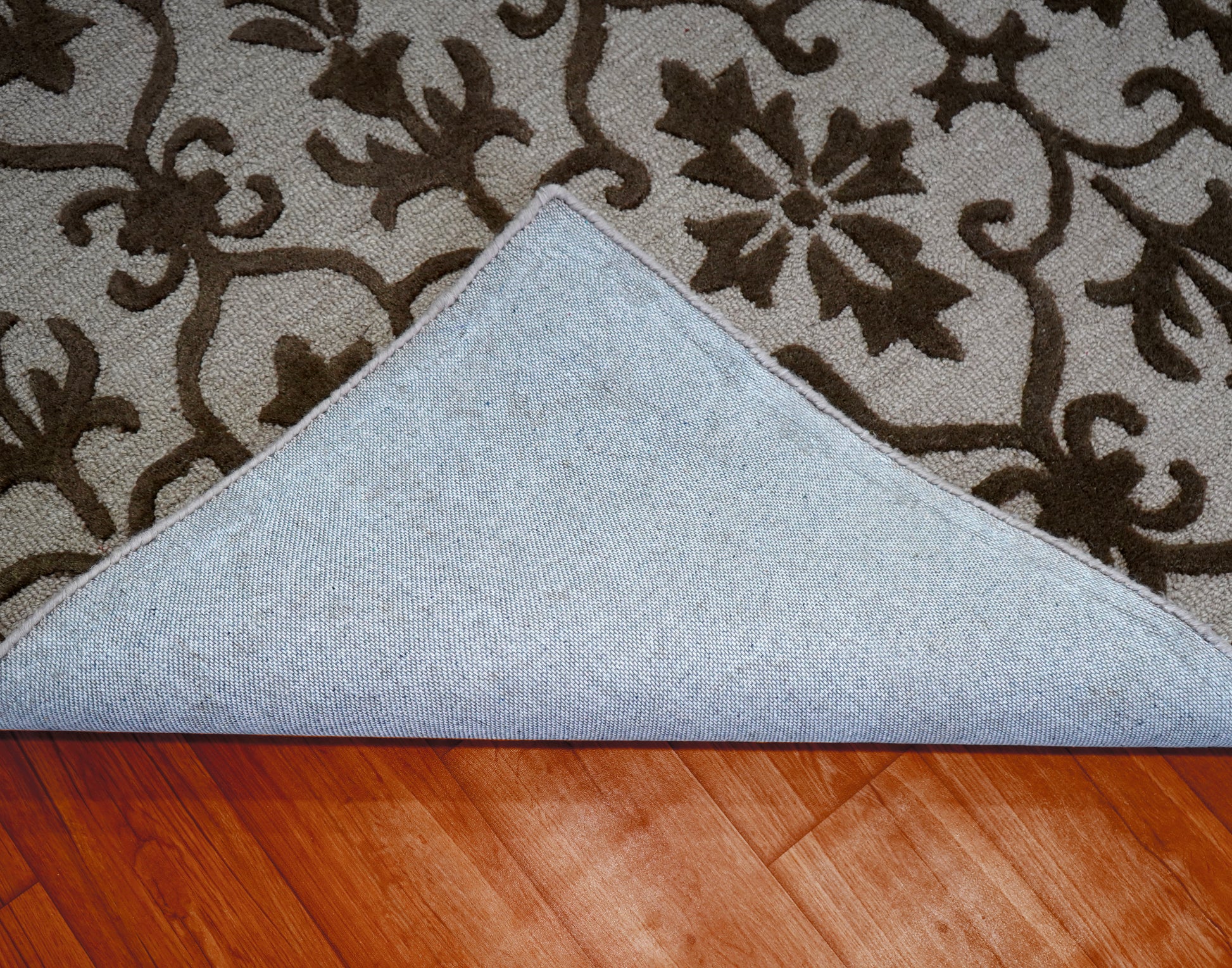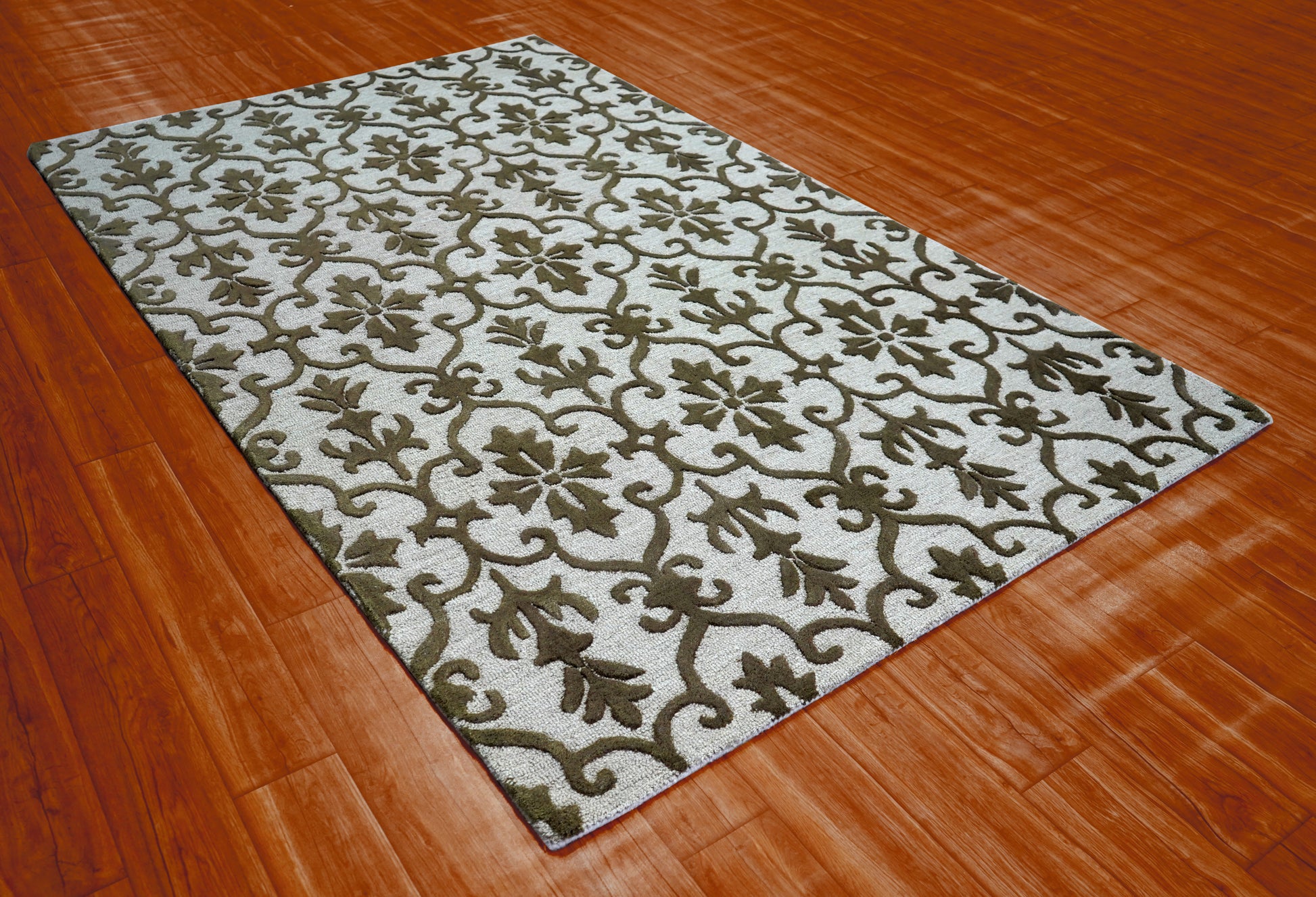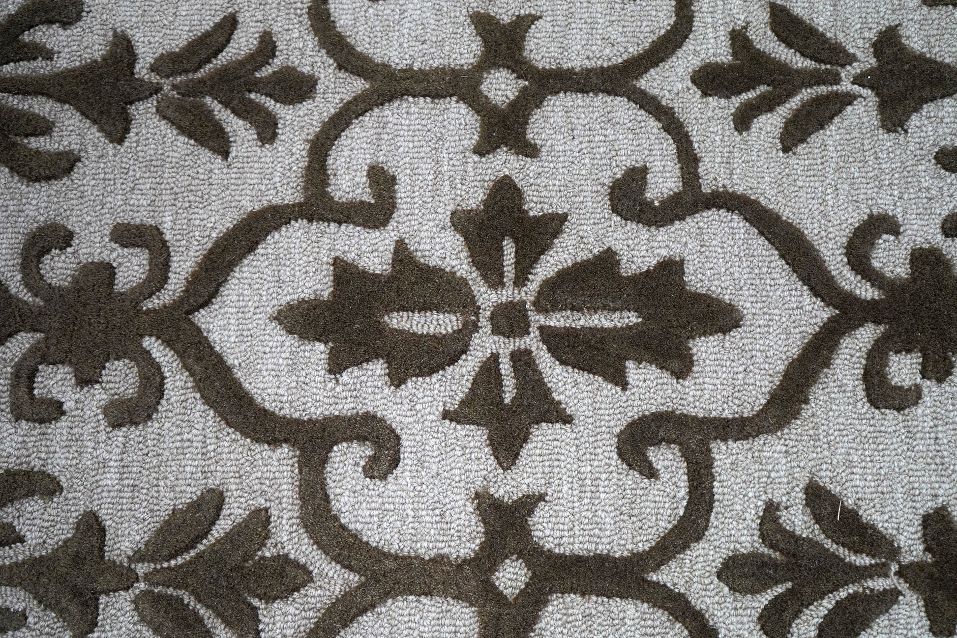 Damask Scrollwork Hand Tufted Wool Area Rug - White Grey Brown Cut Pile Custom Sizes