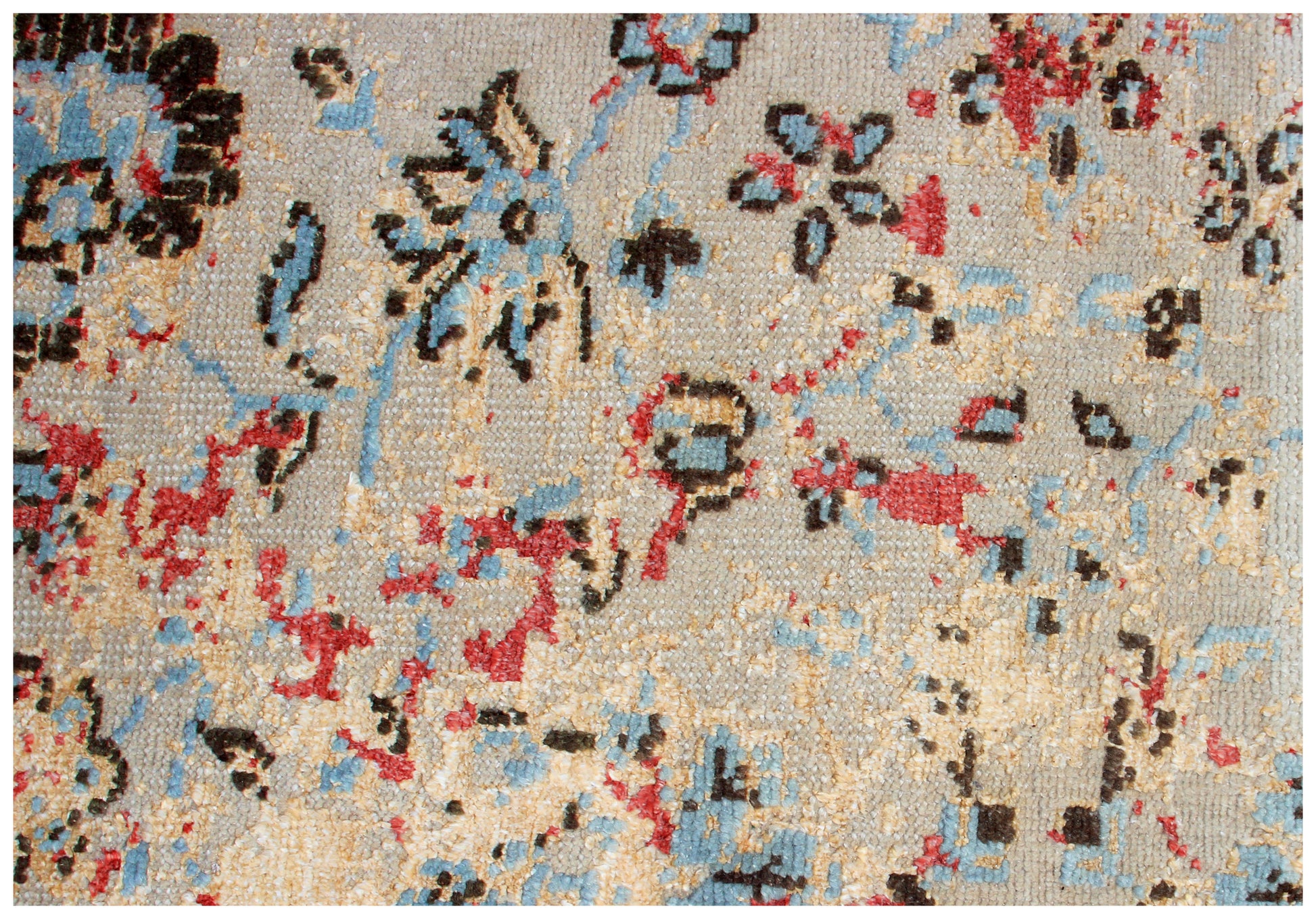 Floral Distressed 7.6x10 Wool Viscose Persian Area Rug - Beige Light Blue Red Hand Knotted Vintage