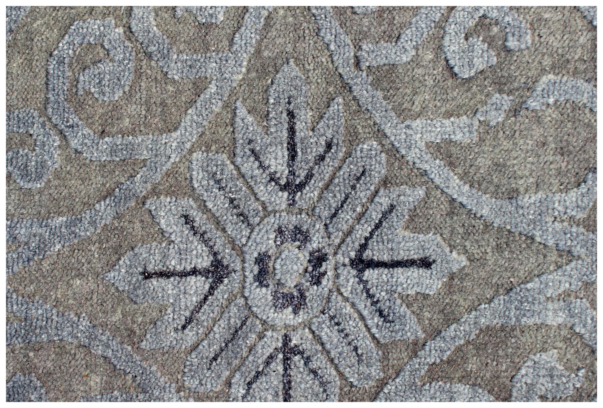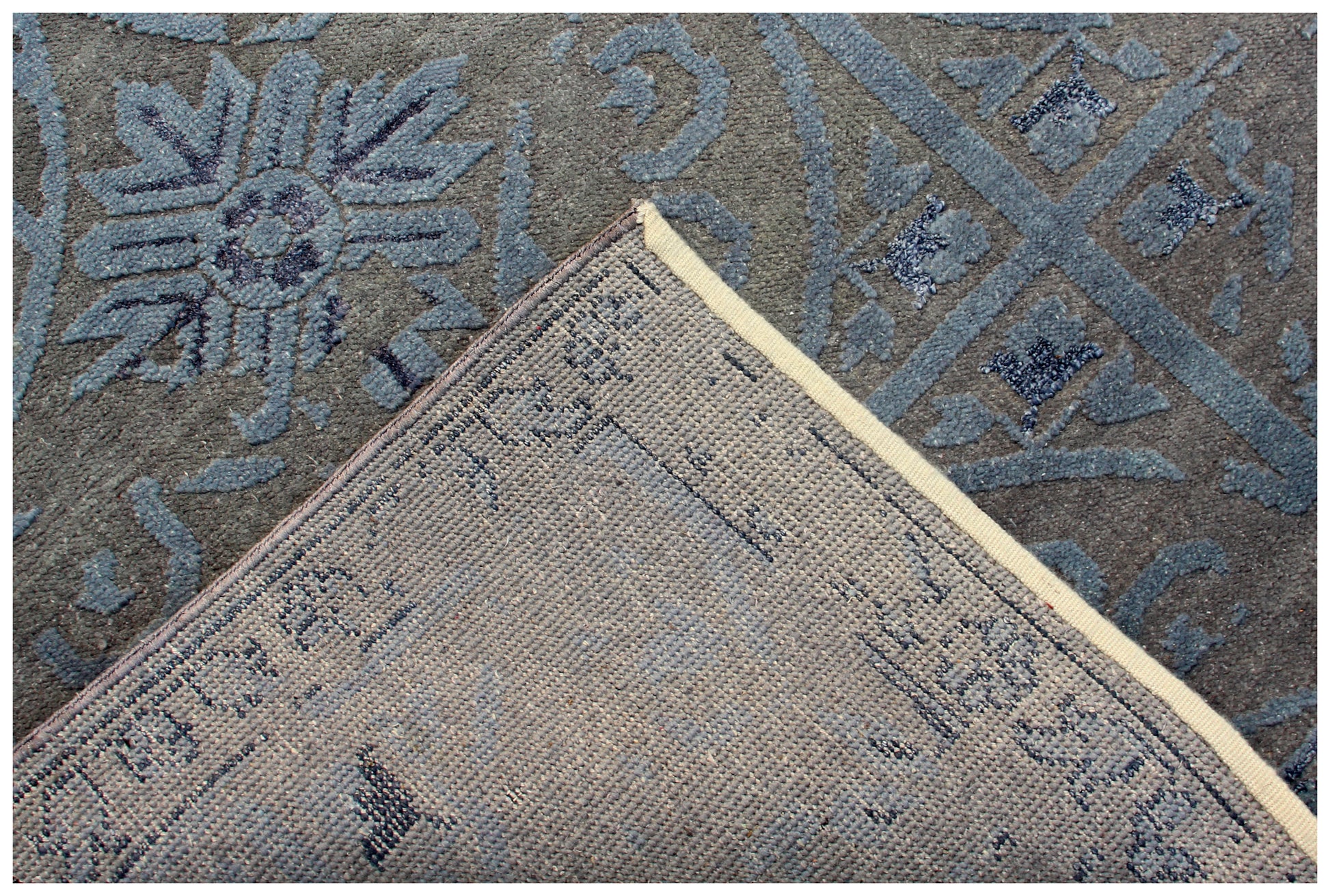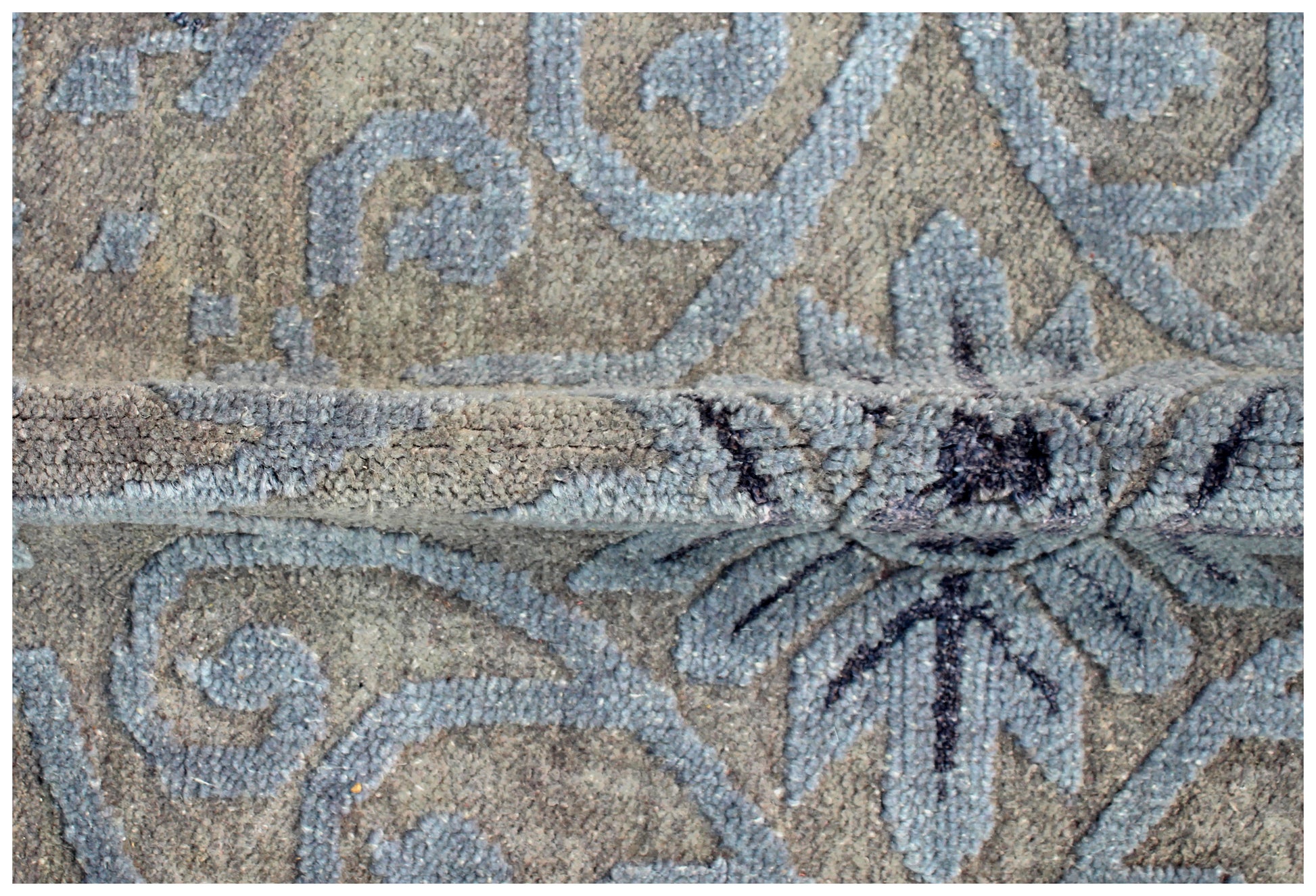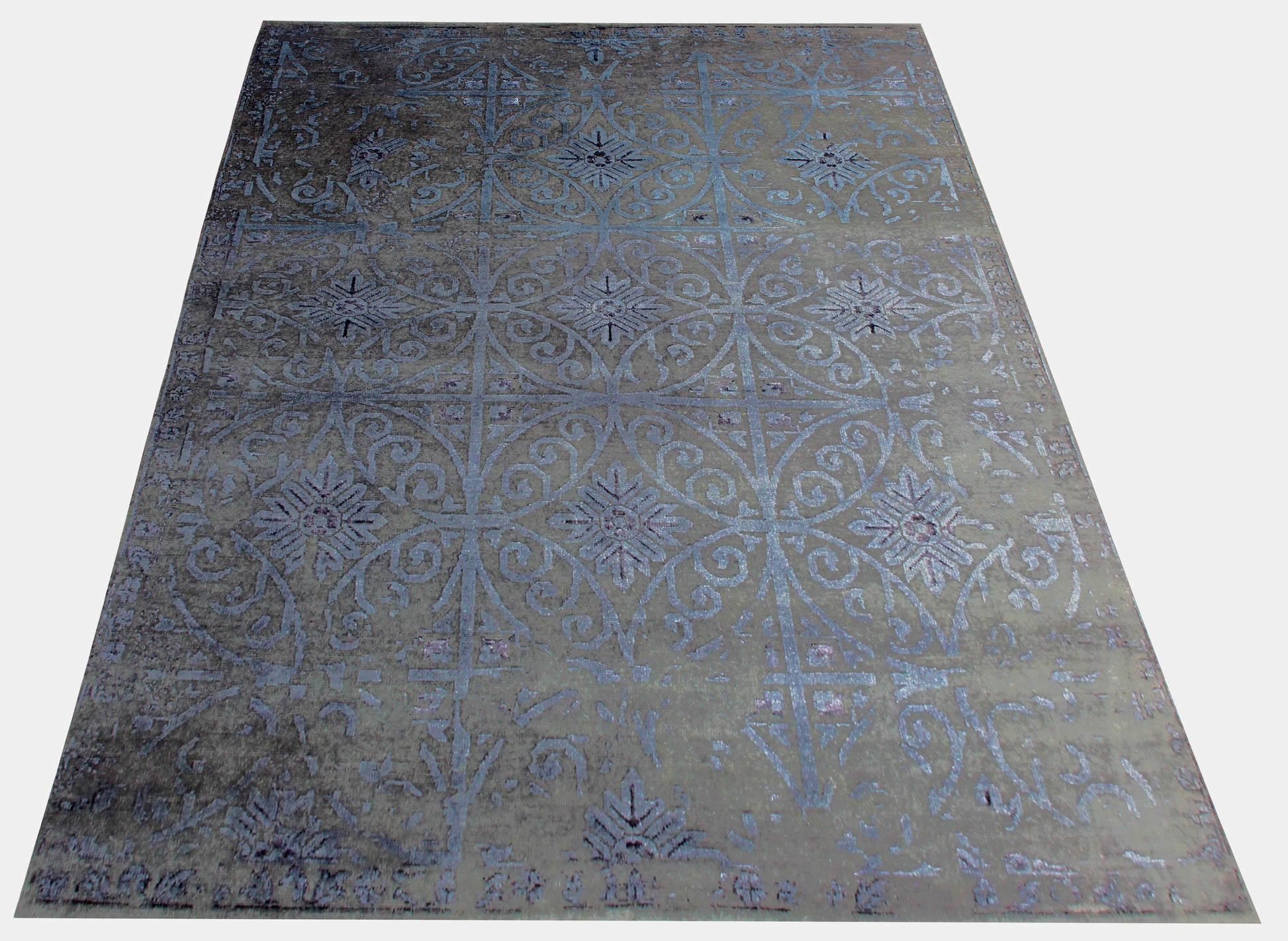 Geometric Tile Distressed 8x9.6 Wool Viscose Area Rug - Grey Blue Silver Vintage Antique Hand Knotted