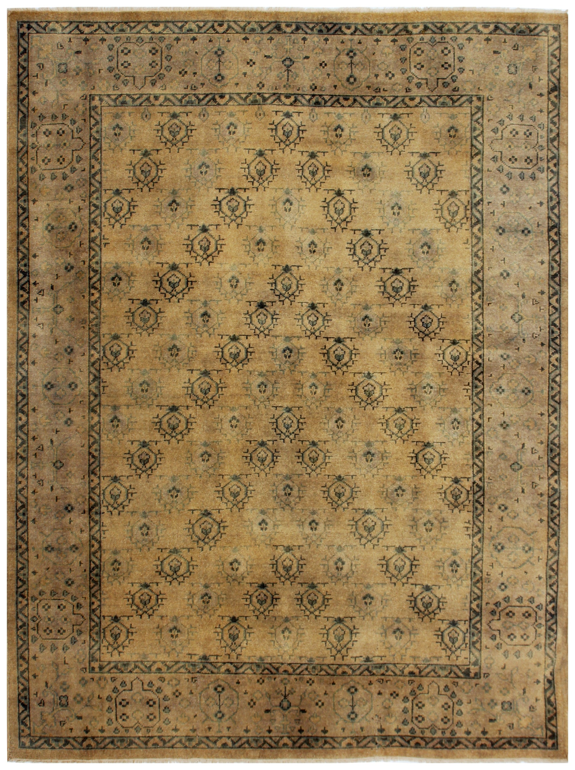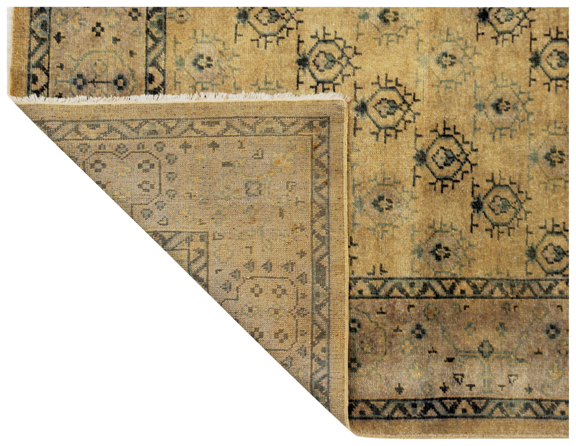 Gold Beige Grey 8x10 Hand Knotted Wool Area Rug - Vintage Antique look Oriental Geometric