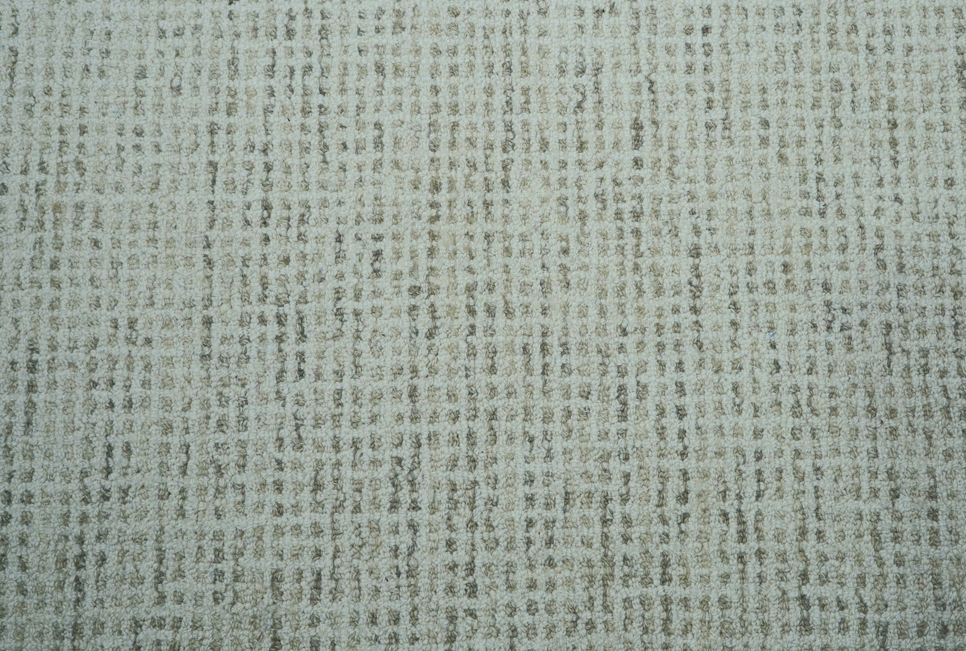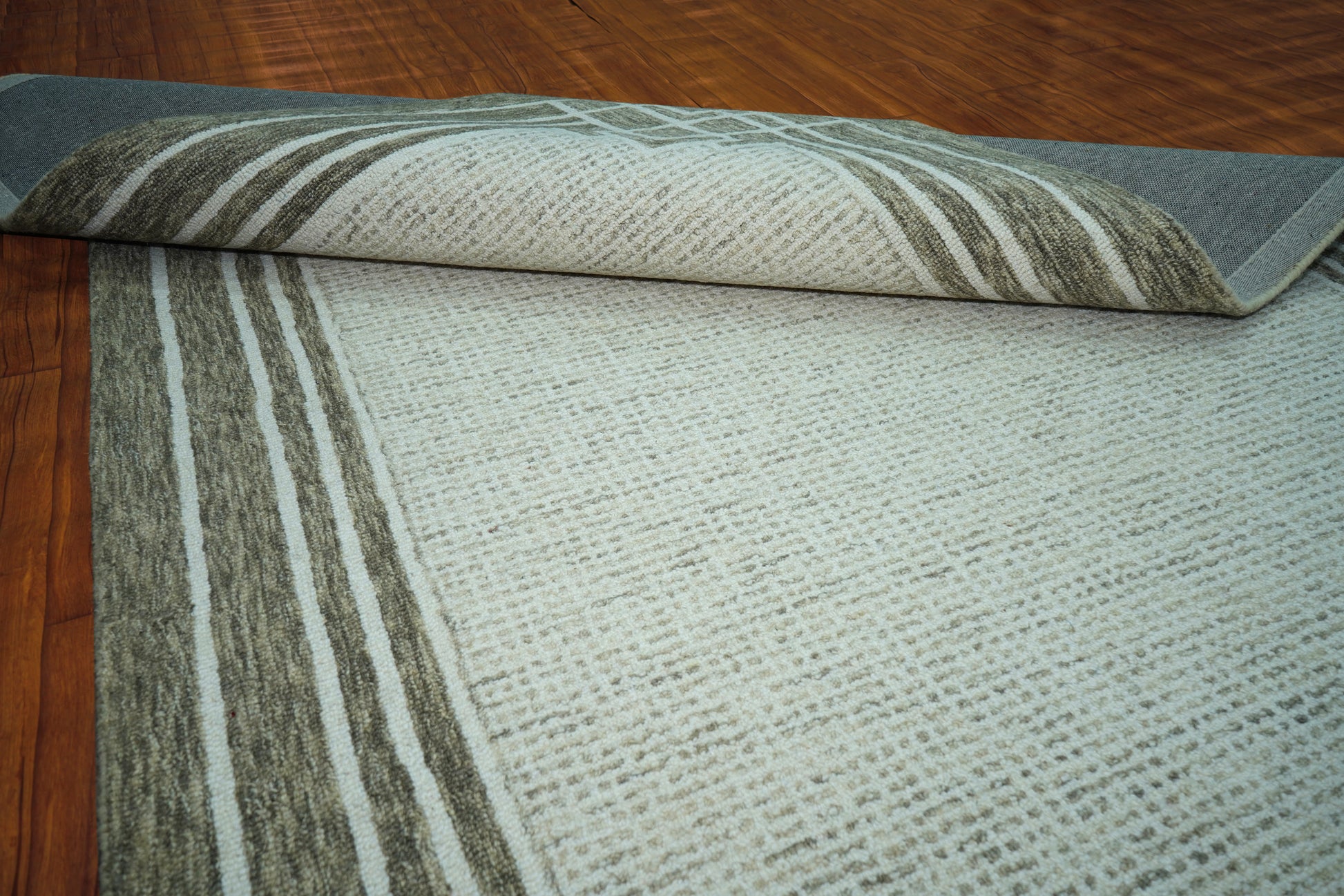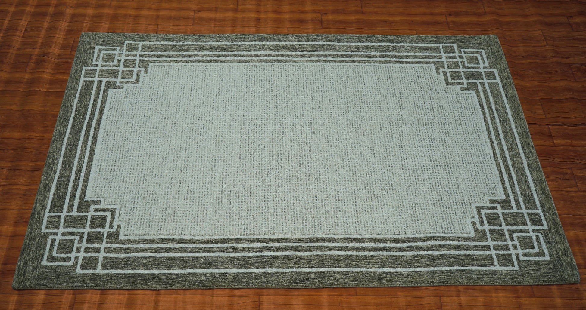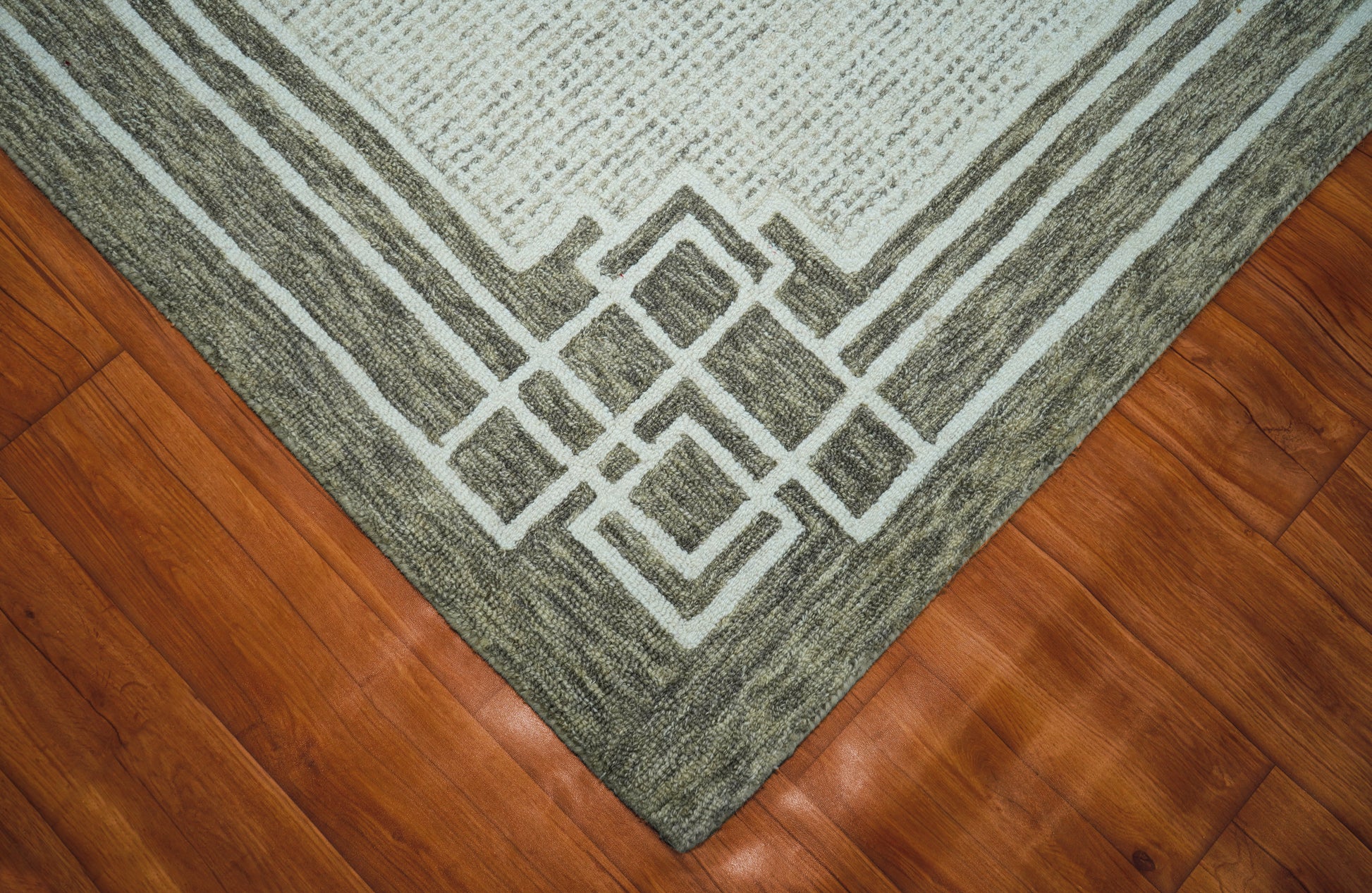 Greek Key Border Hand Tufted Wool Area Rug - Mint Green Grey Cut Pile Geometric Custom Sizes