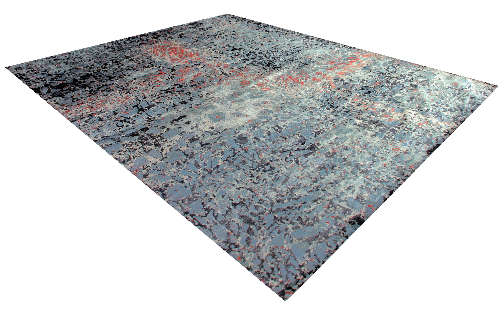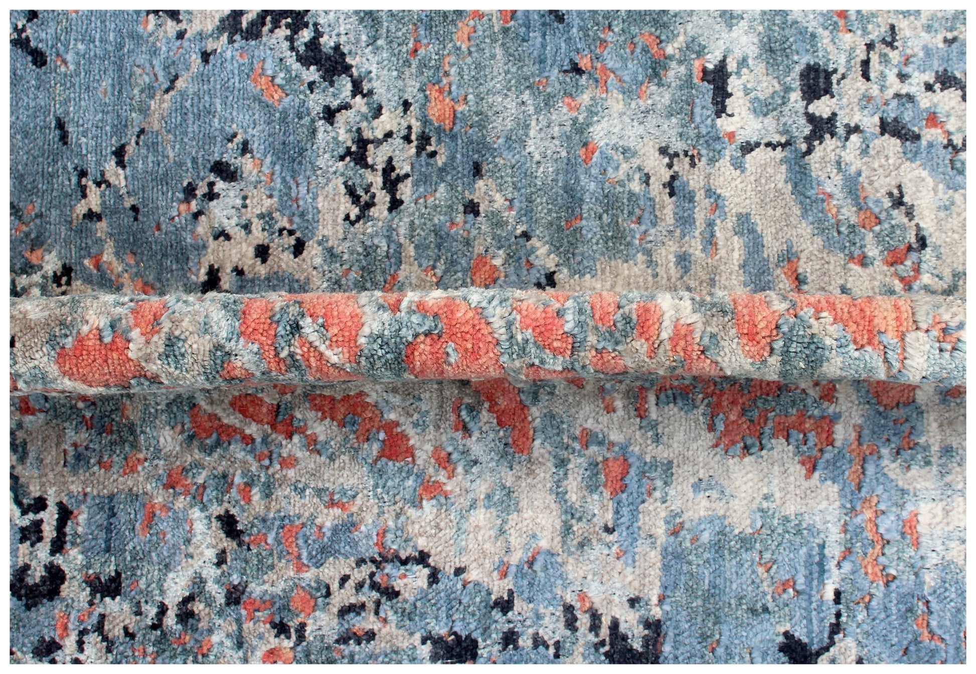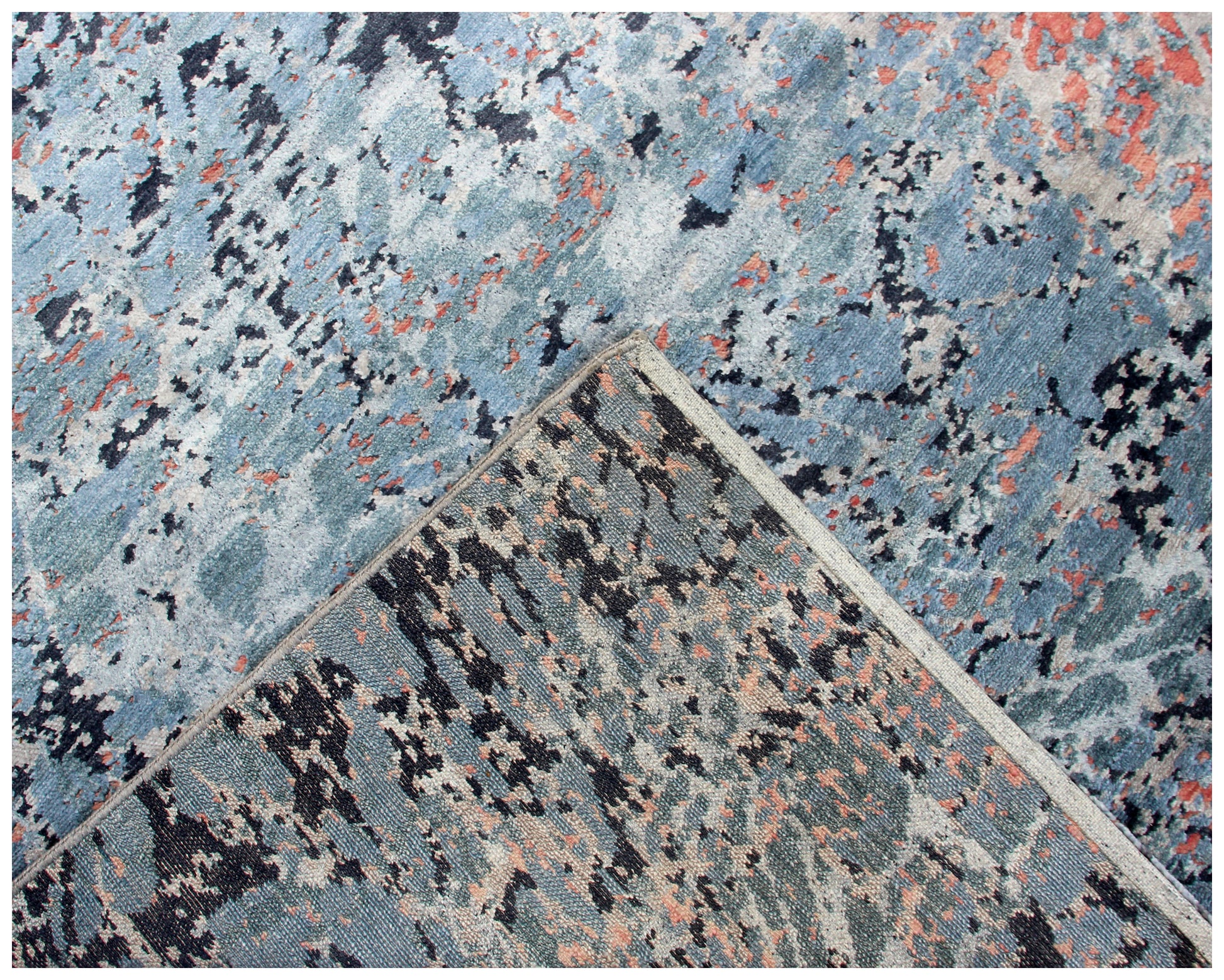 Grey Turquoise Pink 8x10 Hand Knotted Wool Viscose Area Rug - Vintage Antique Abstract
