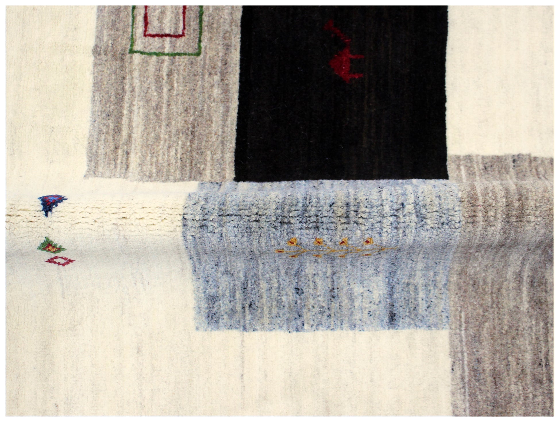 Hand Knotted Contemporary Gabbeh Patchwork Wool Rug 8x10 - Ivory Grey Multi