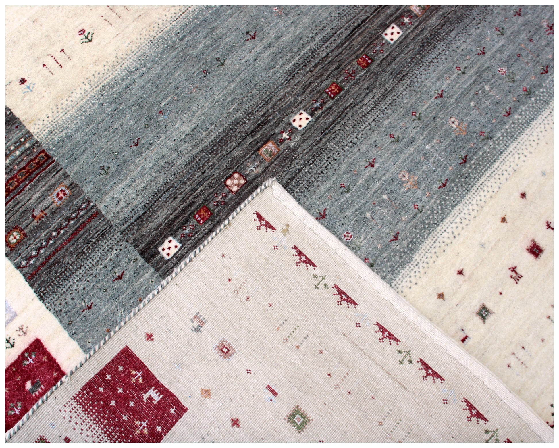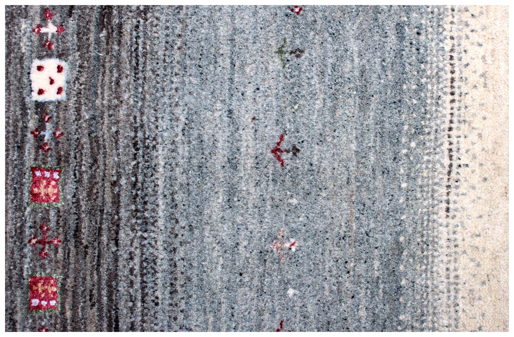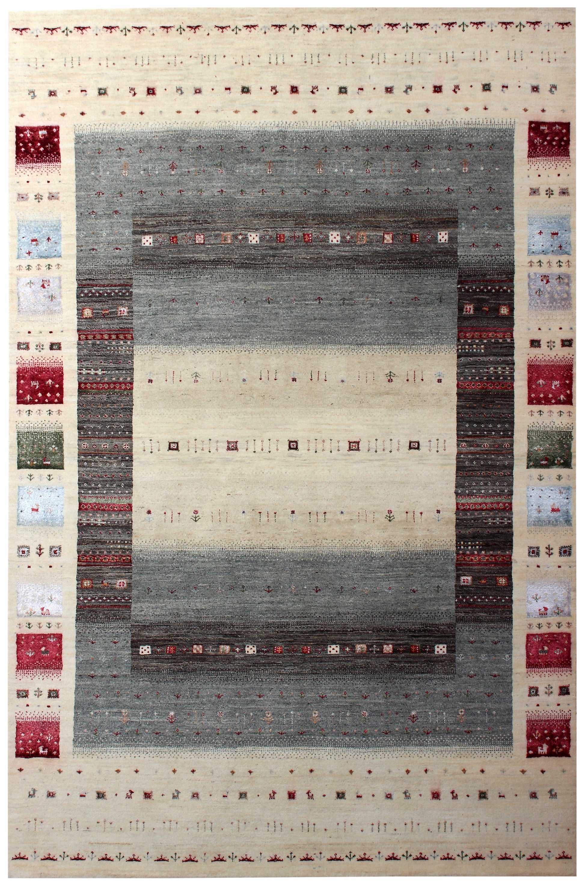 Hand Knotted Gabbeh Tribal Wool Rug 6.6x10 Ivory Grey Horizontal Bands