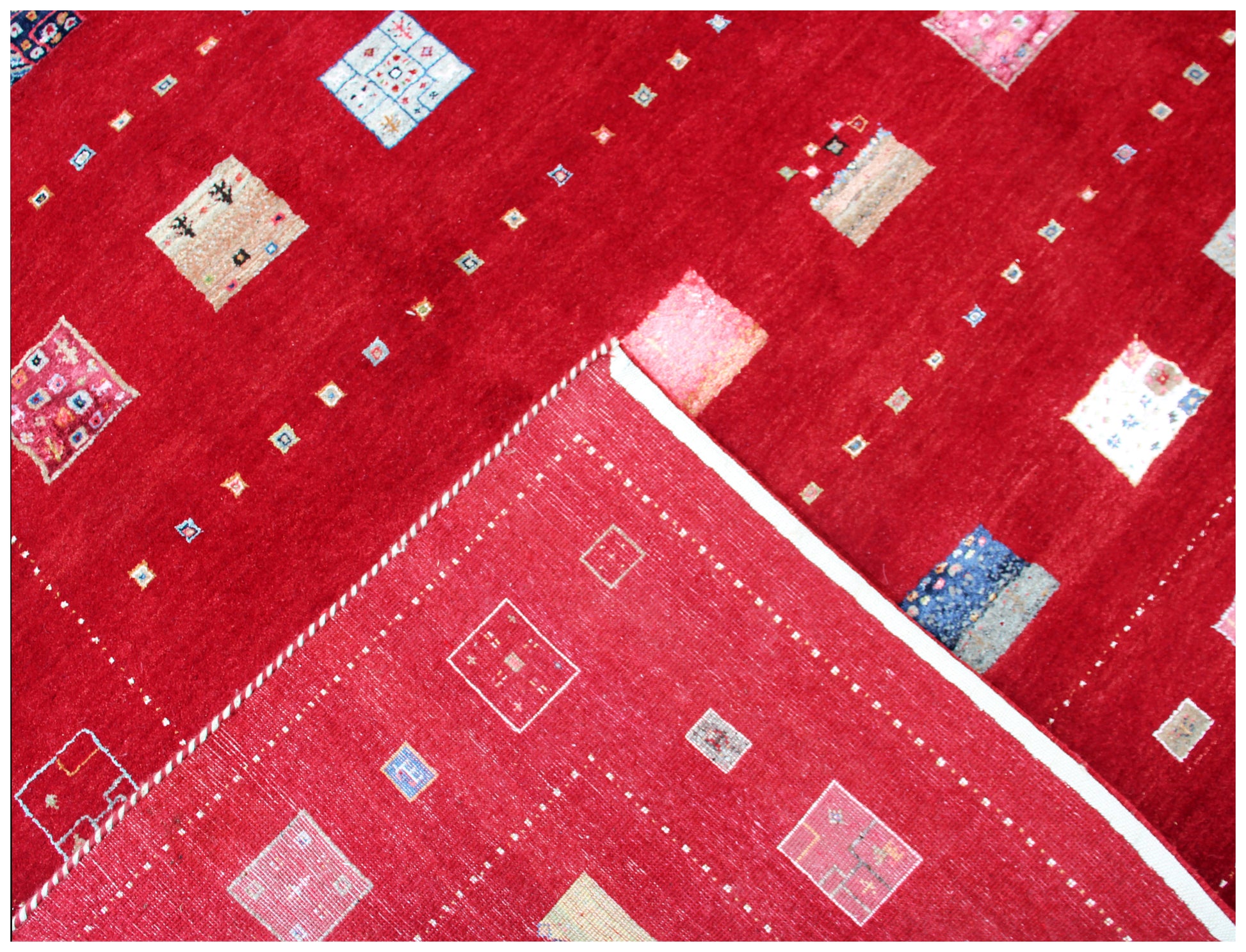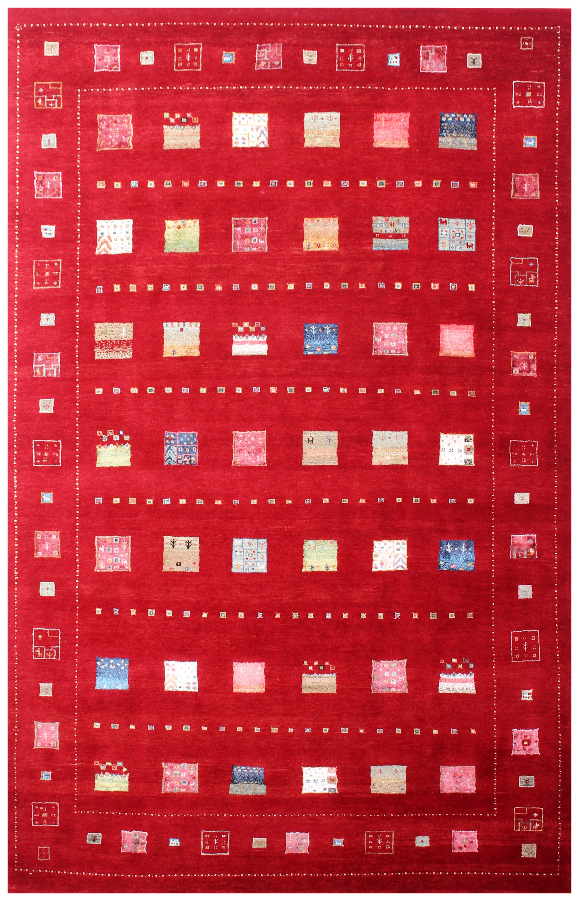 Hand Knotted Gabbeh Tribal Wool Rug 6.6x10 Red Multi Geometric Blocks