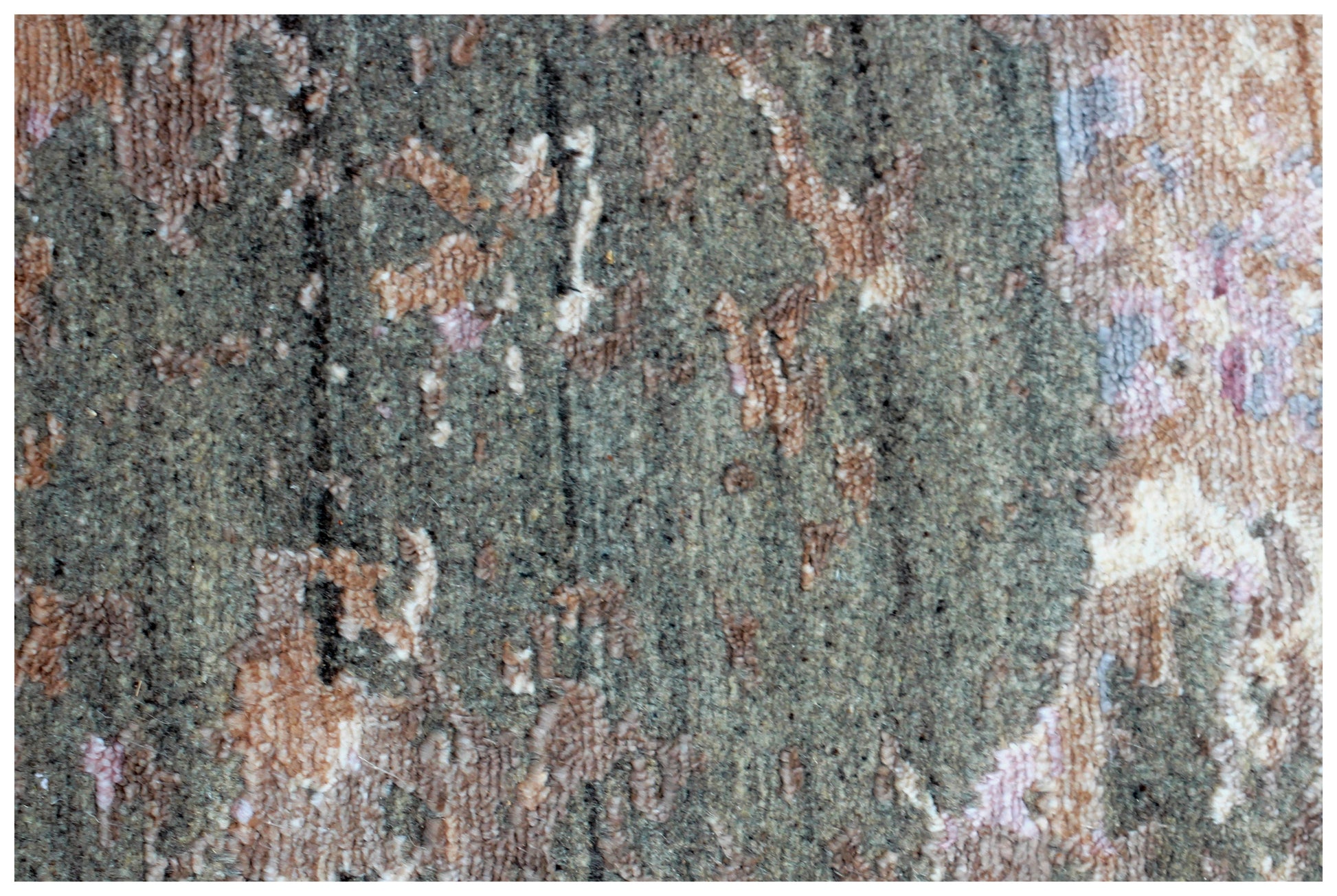 Hand Knotted Vintage Antique Brown Beige Gold 8x10 Wool Viscose Area Rug - Abstract Distressed