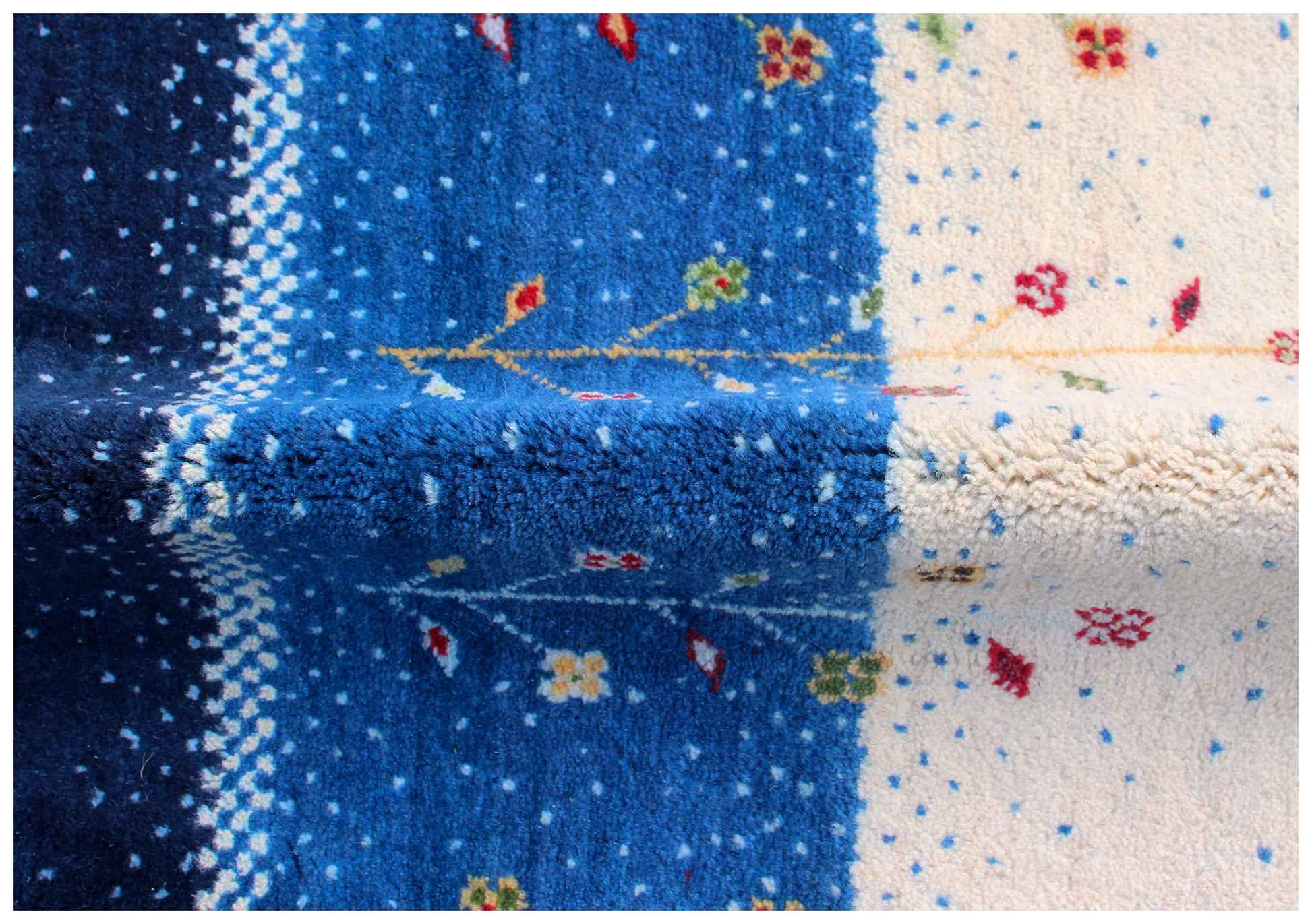 Ivory Blue Stripes Gabbeh Wool Rug 5.6x8 - Hand Knotted Tree Motifs