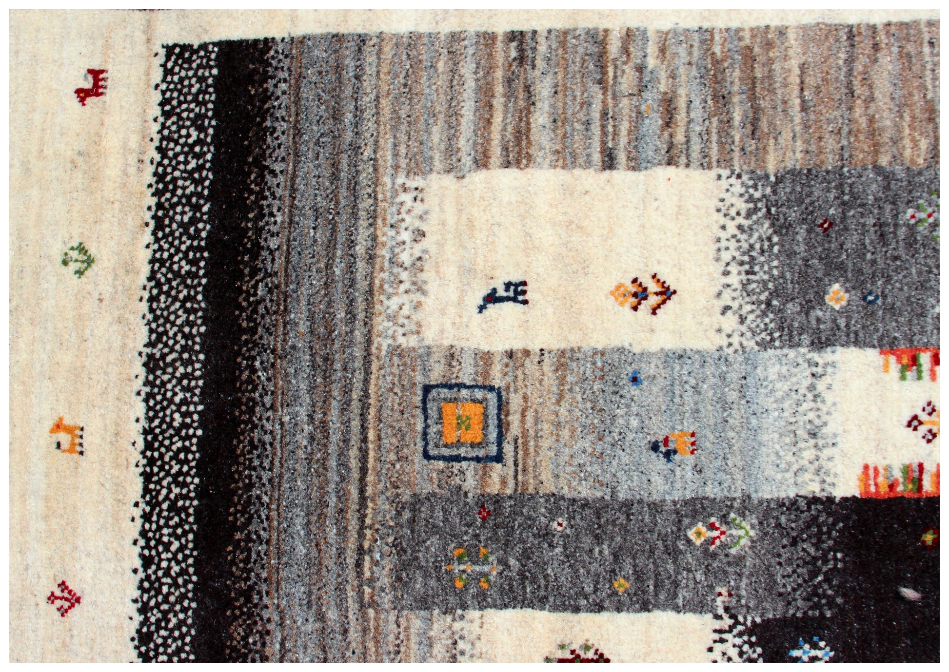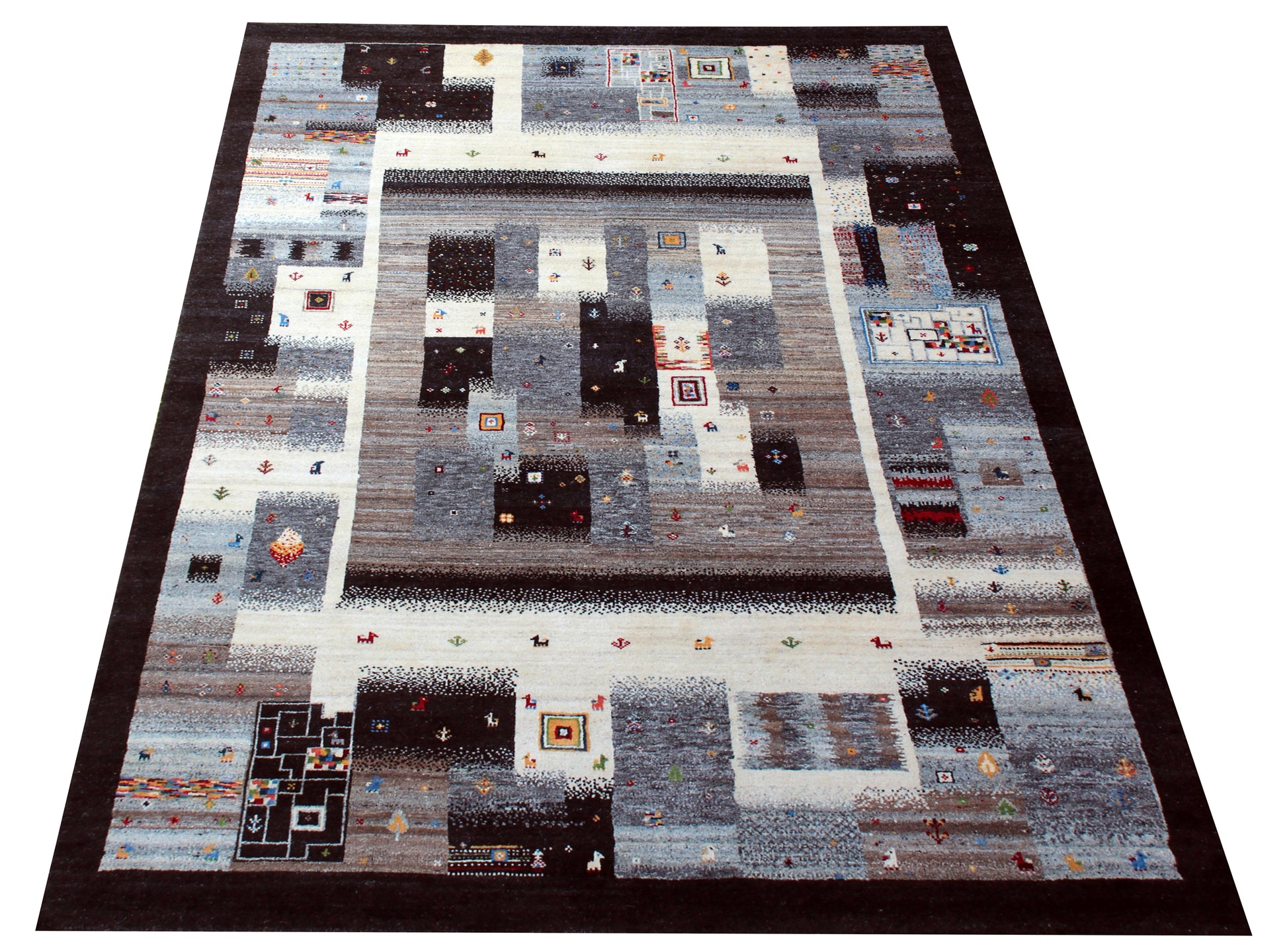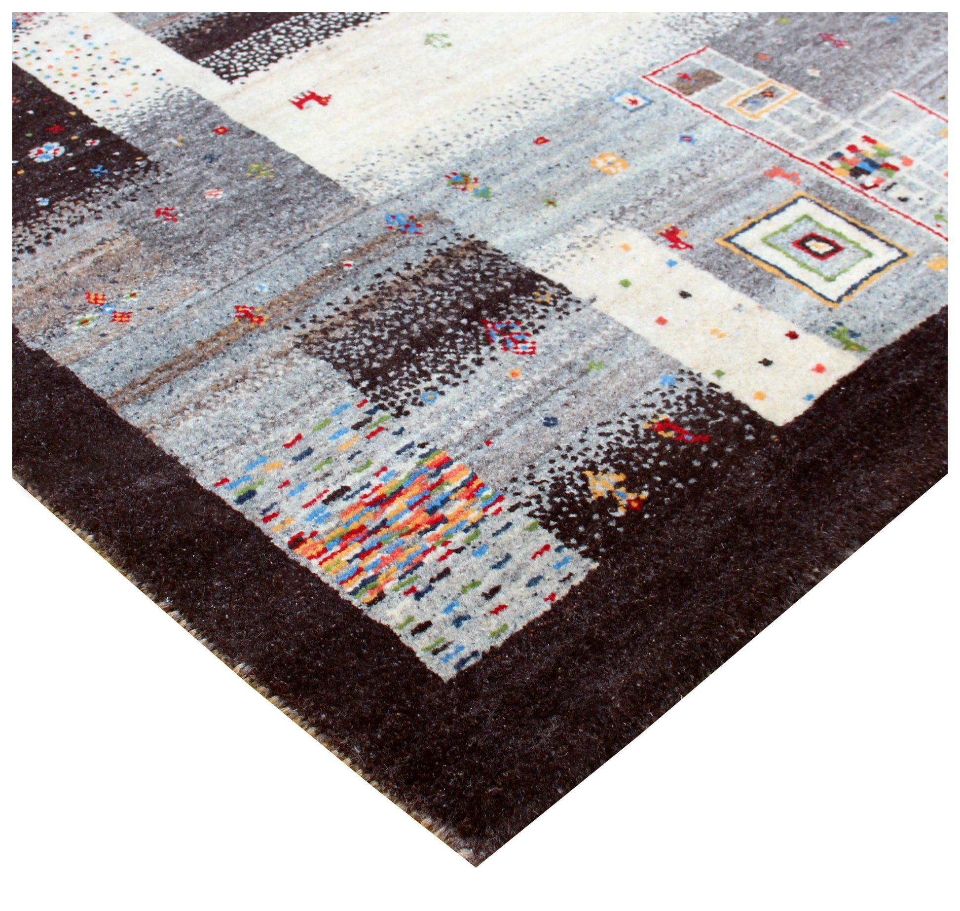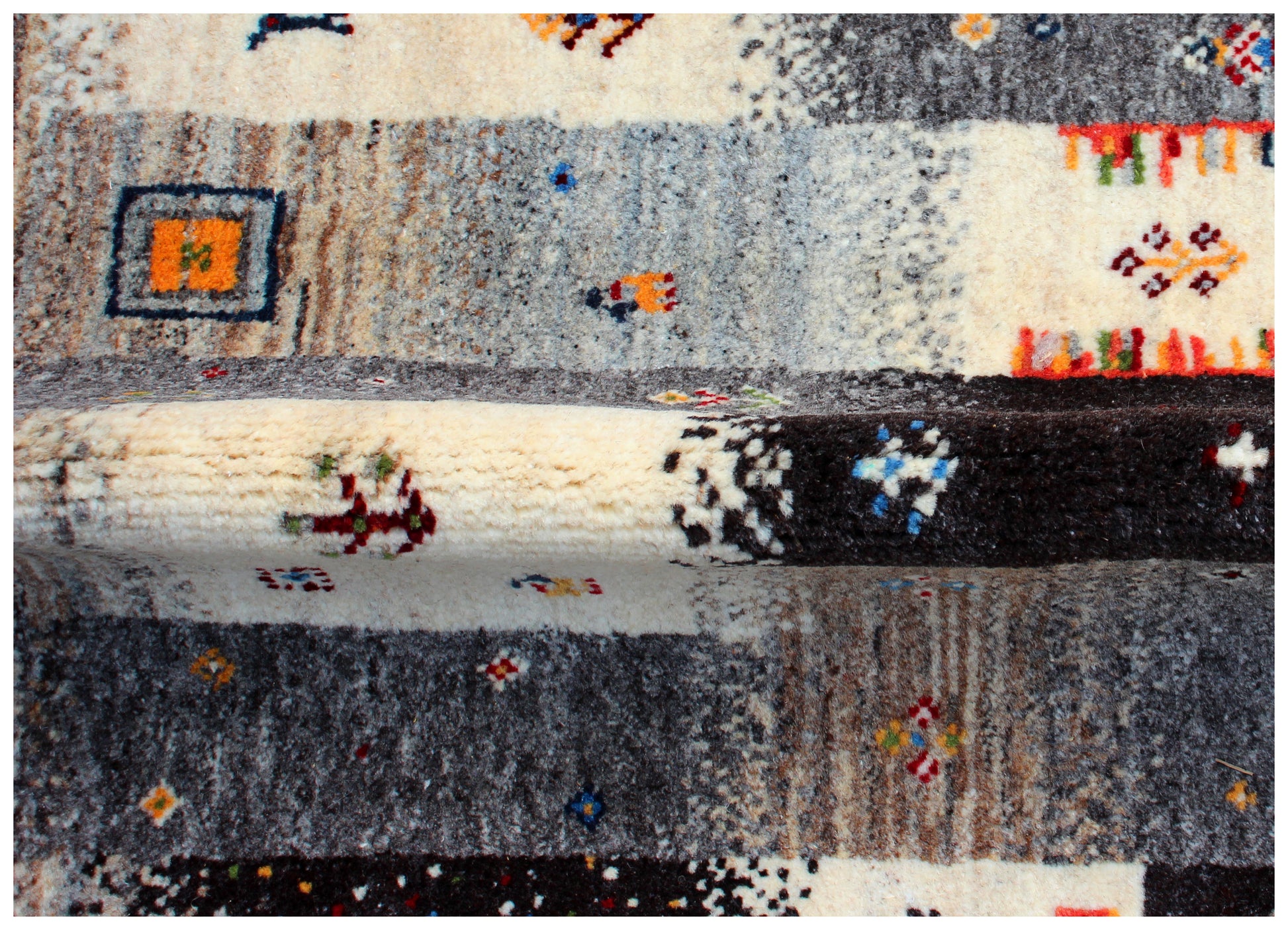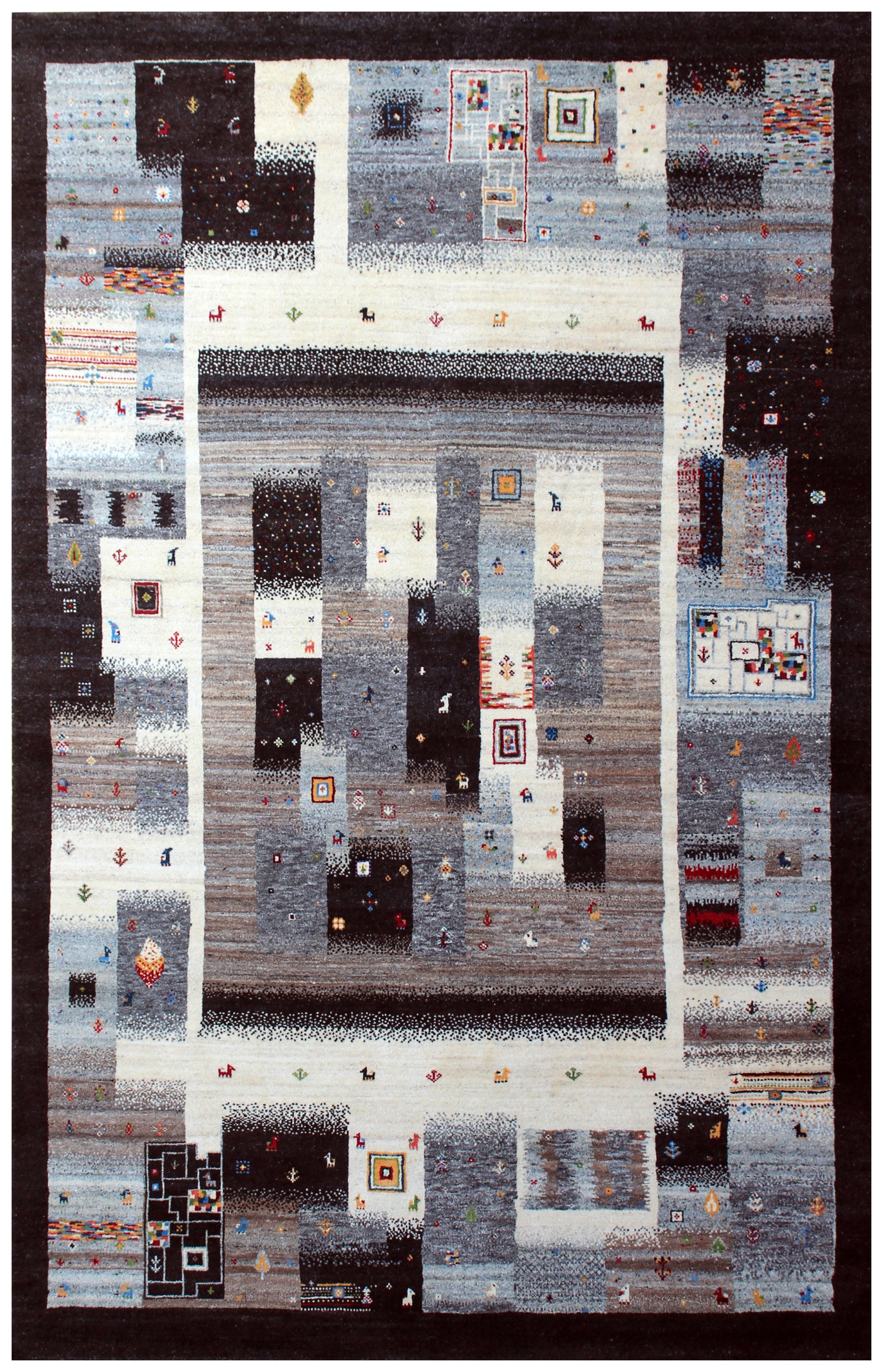 Ivory Grey Brown Gabbeh Patchwork 5.6x8 Area Rug - Hand Knotted