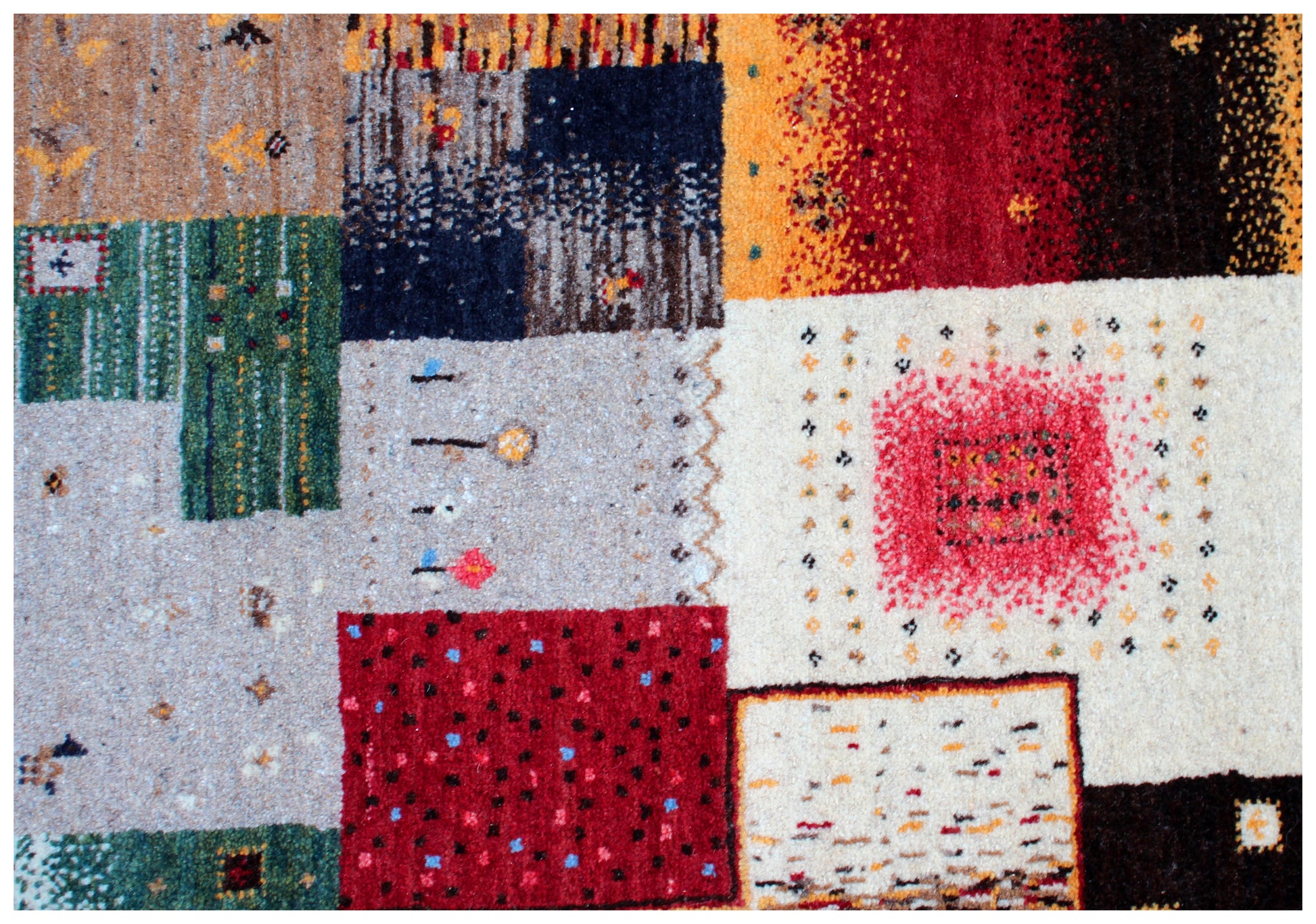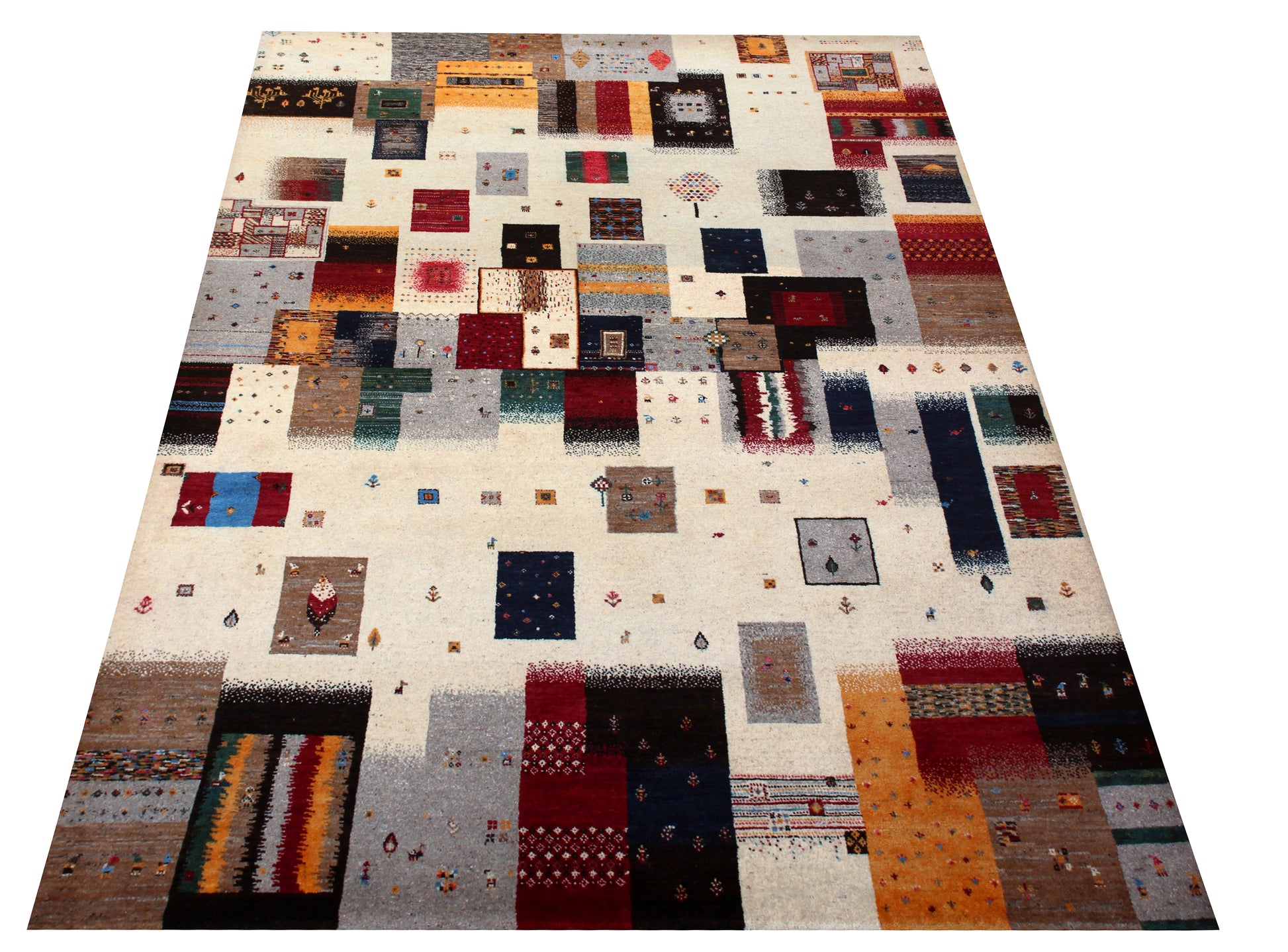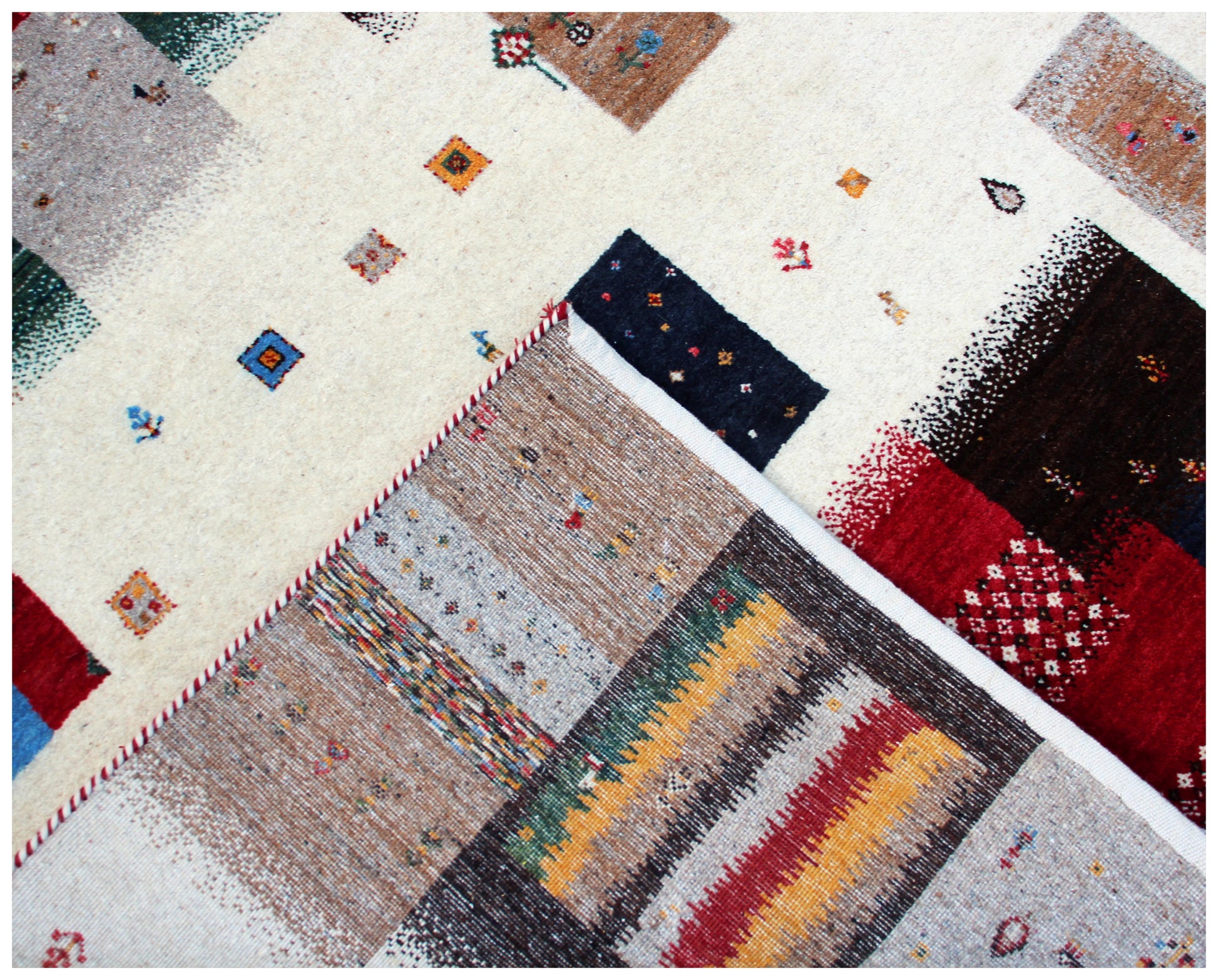 Ivory Multi-Color Gabbeh Patchwork Wool Rug 5.6x8 - Hand Knotted