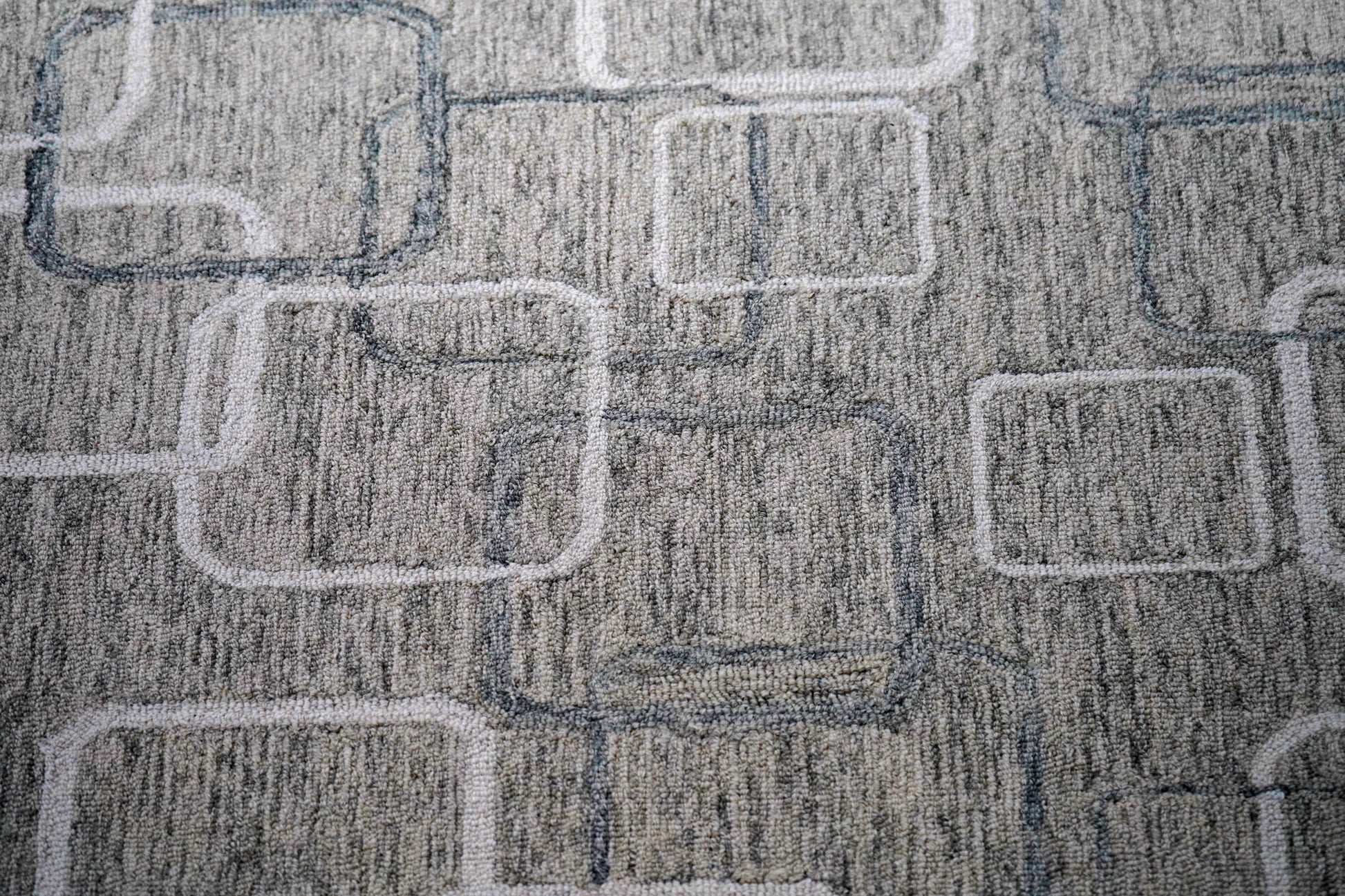 Mint Green Ivory Geometric Squares Hand Tufted Wool Area Rug - Cut Pile Modern Custom Sizes