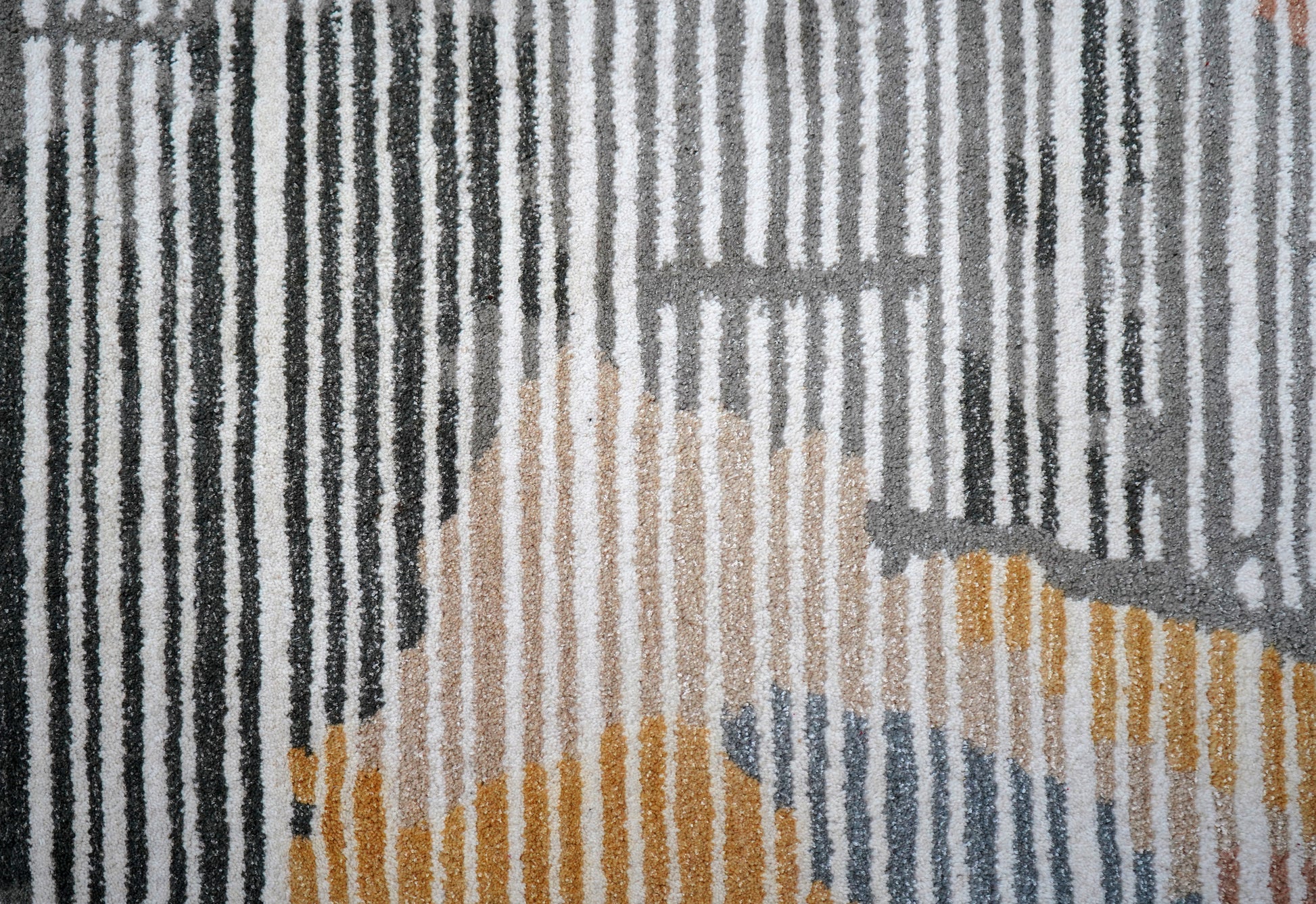 Multi-Color Abstract Striped Hand Tufted Wool Area Rug - Blue Yellow Grey Cut Pile Custom Sizes