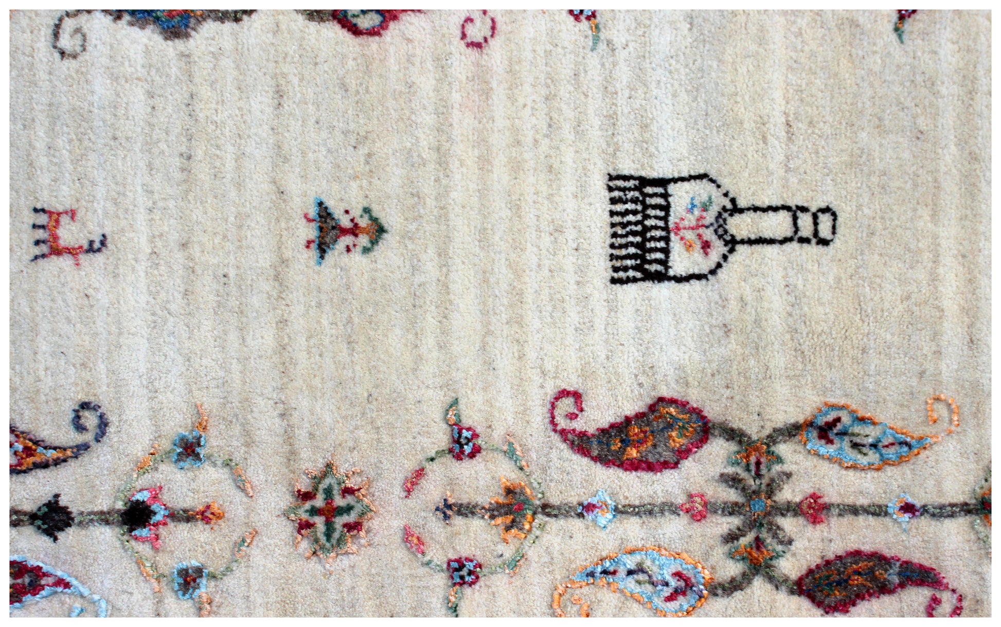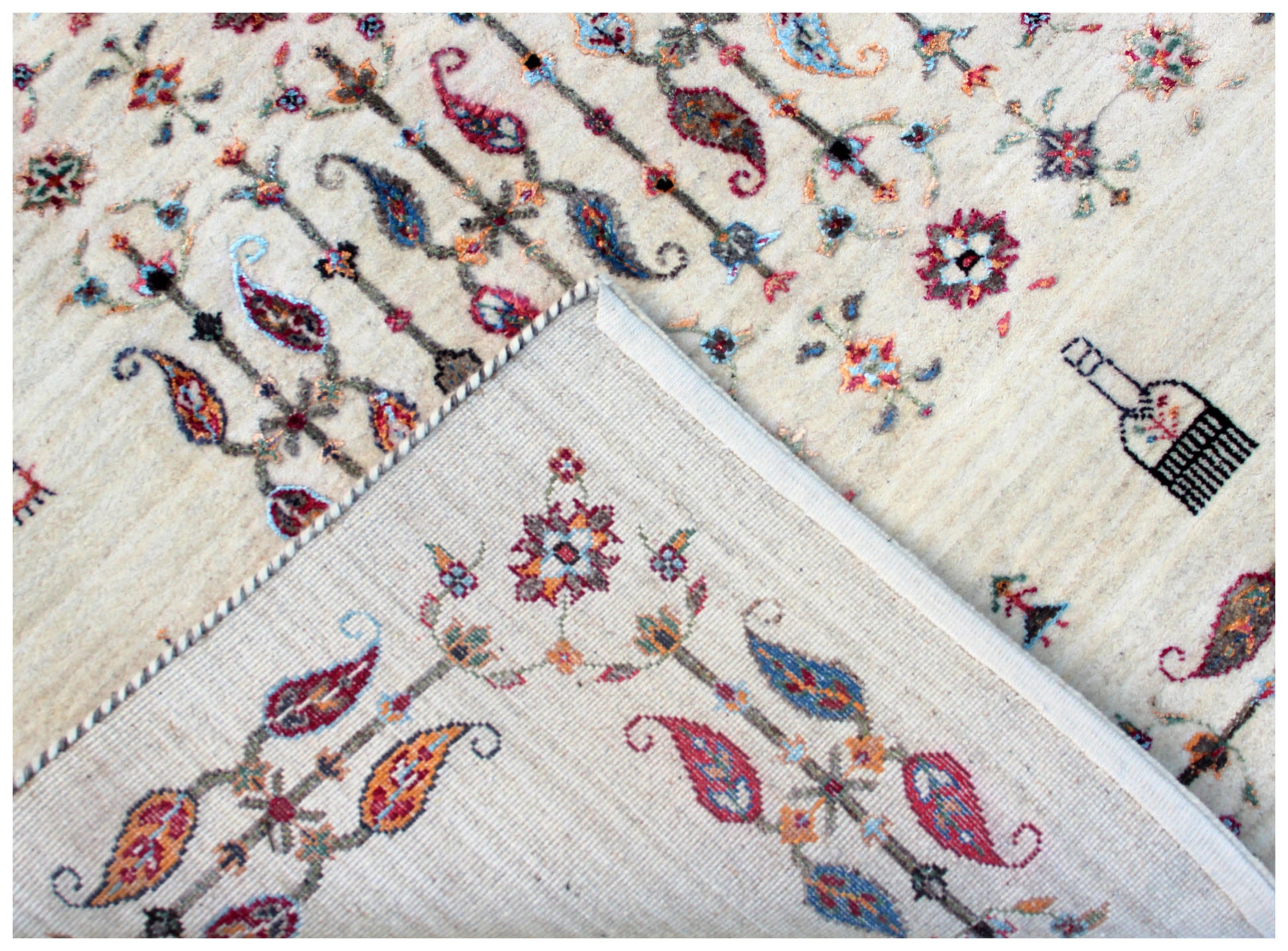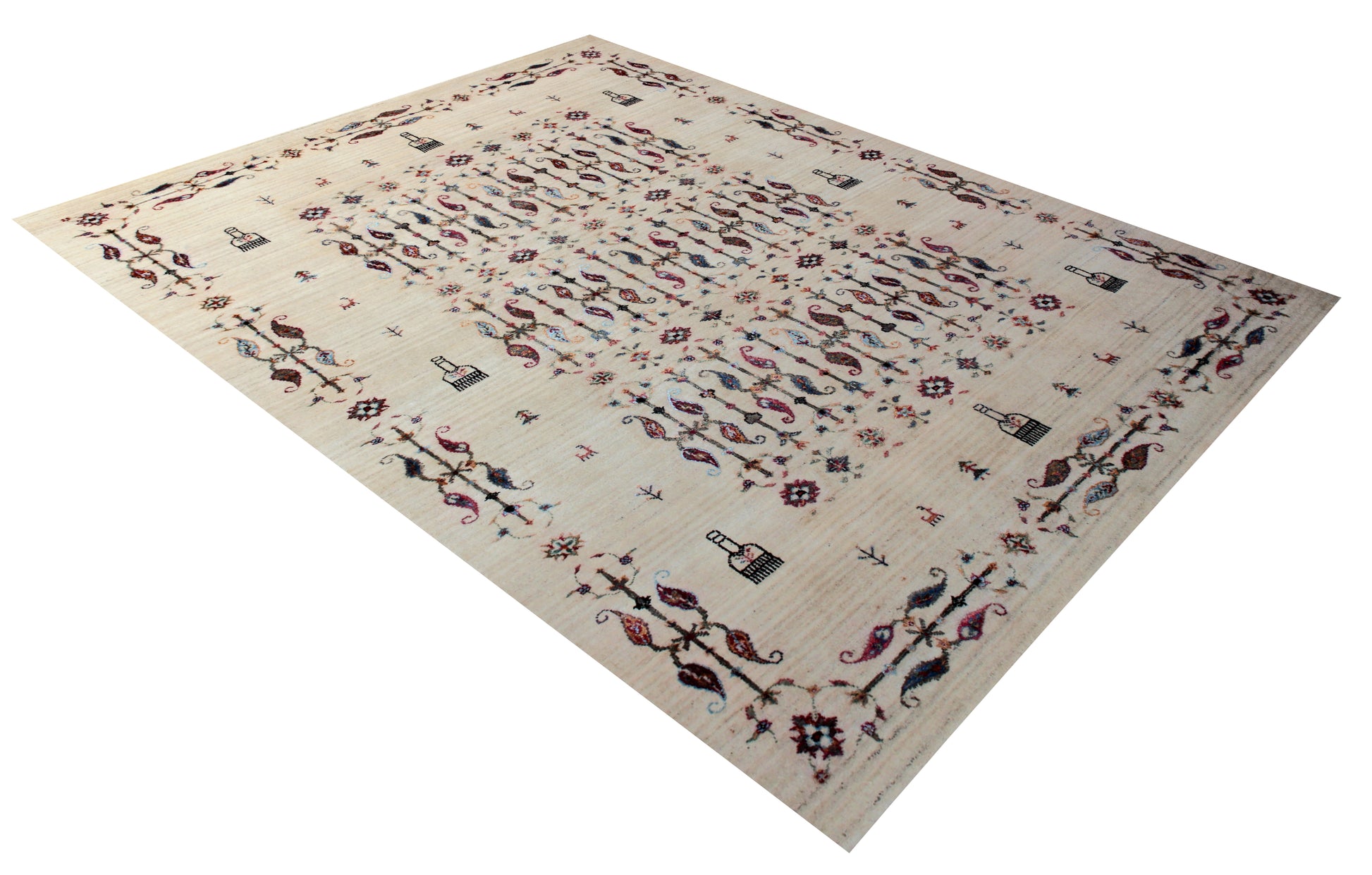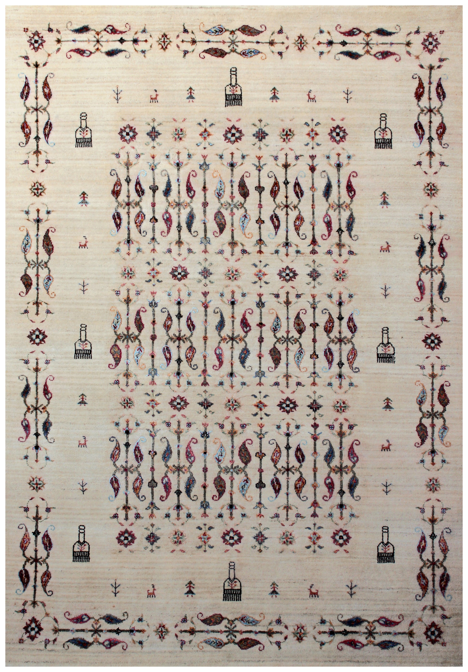 Paisley Gabbeh 5.6x8 Hand Knotted Ivory Vibrant Color Area Rug