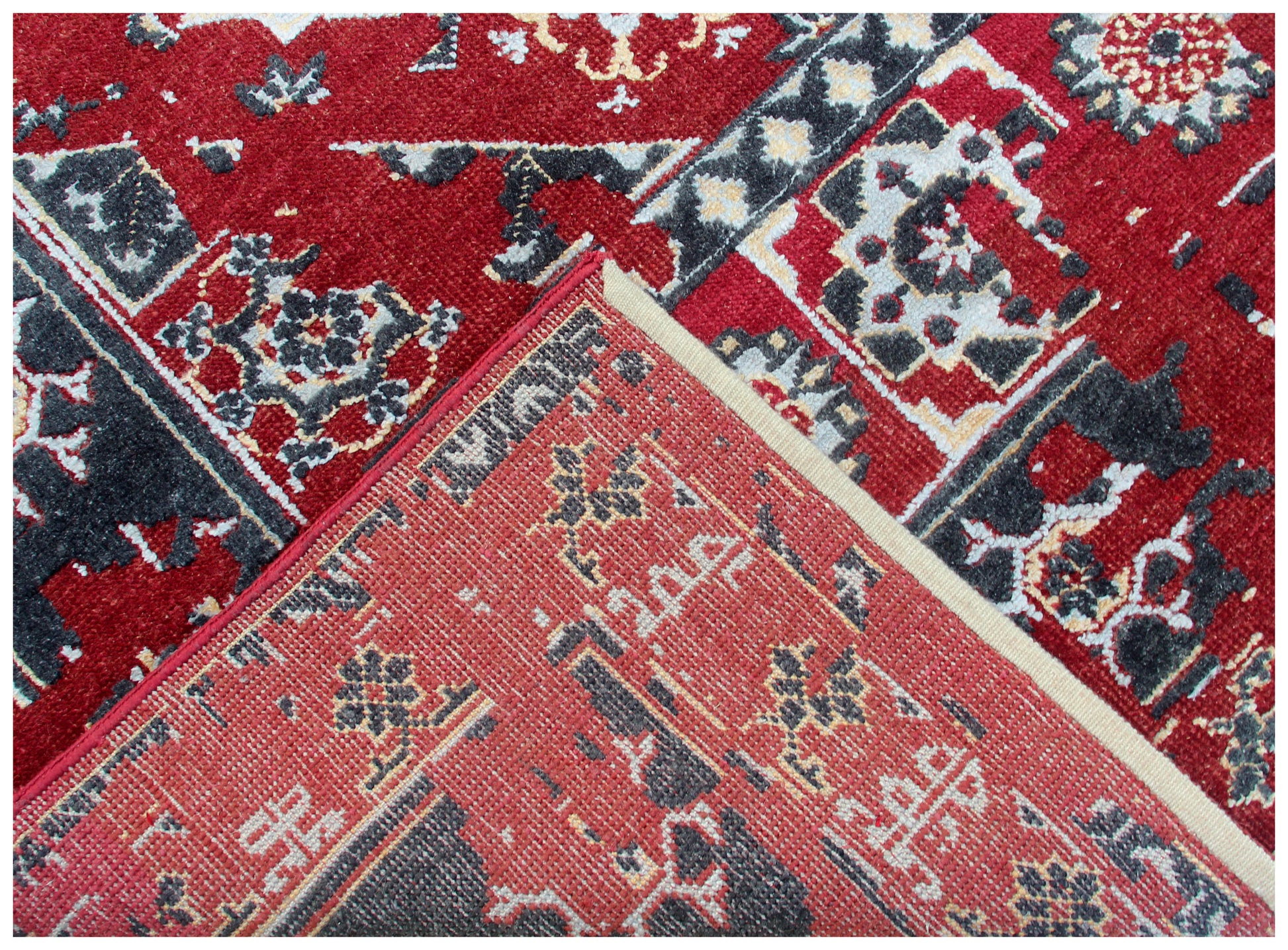 Persian Vintage Antique 8x10 Wool Viscose Area Rug - Red Black Cream Hand Knotted Geometric Medallion