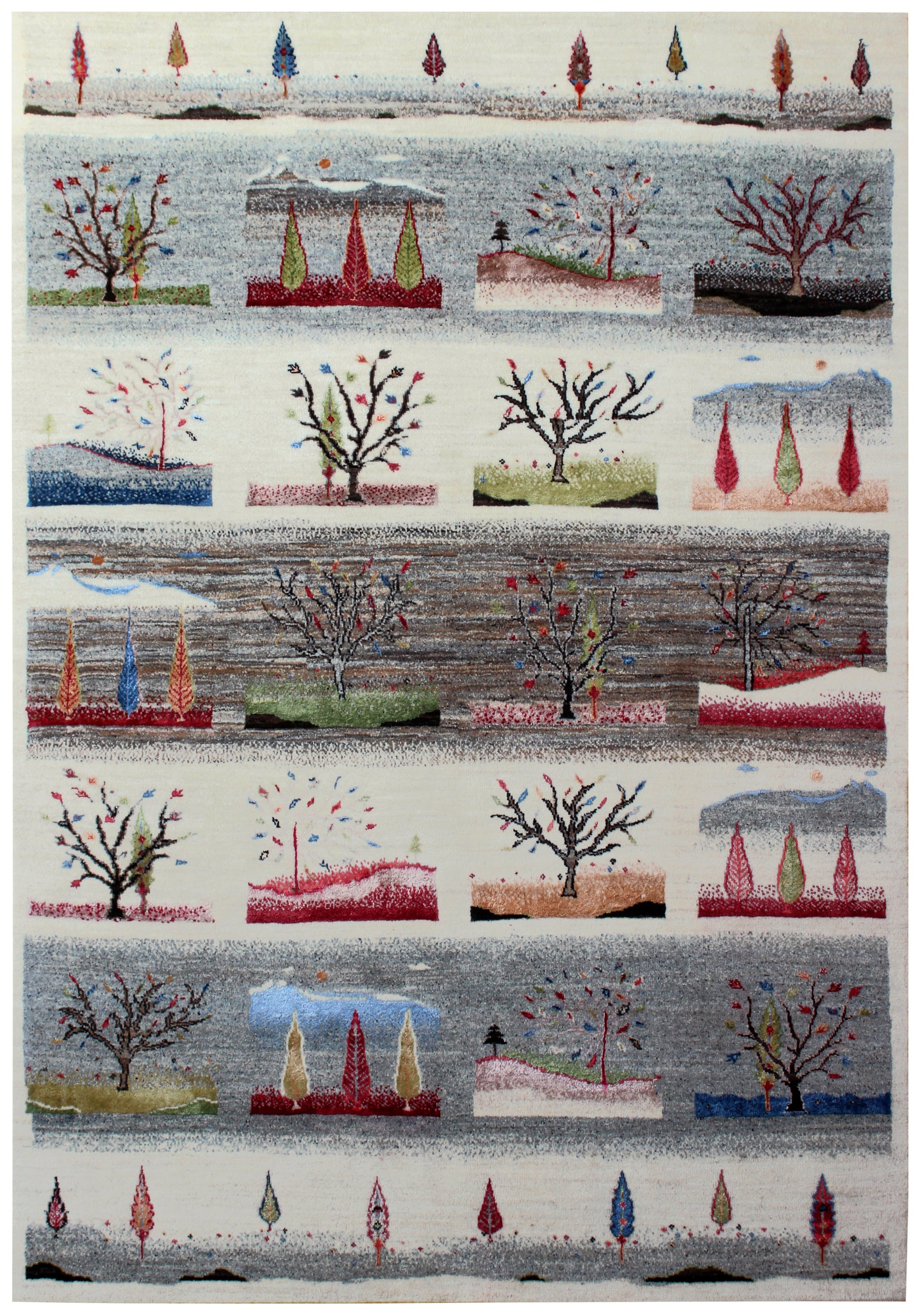 Seasonal Landscape 5.6x8 Gabbeh Hand Knotted Ivory Vibrant Color Area Rug