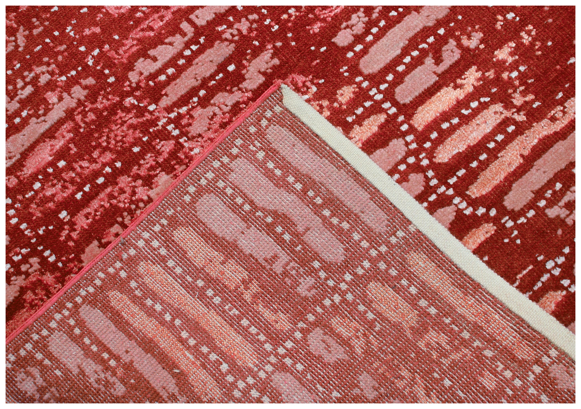 Striped Distressed Wool Viscose 8x10 Area Rug - Red Pink Rust Vintage Antique Hand Knotted Abstract