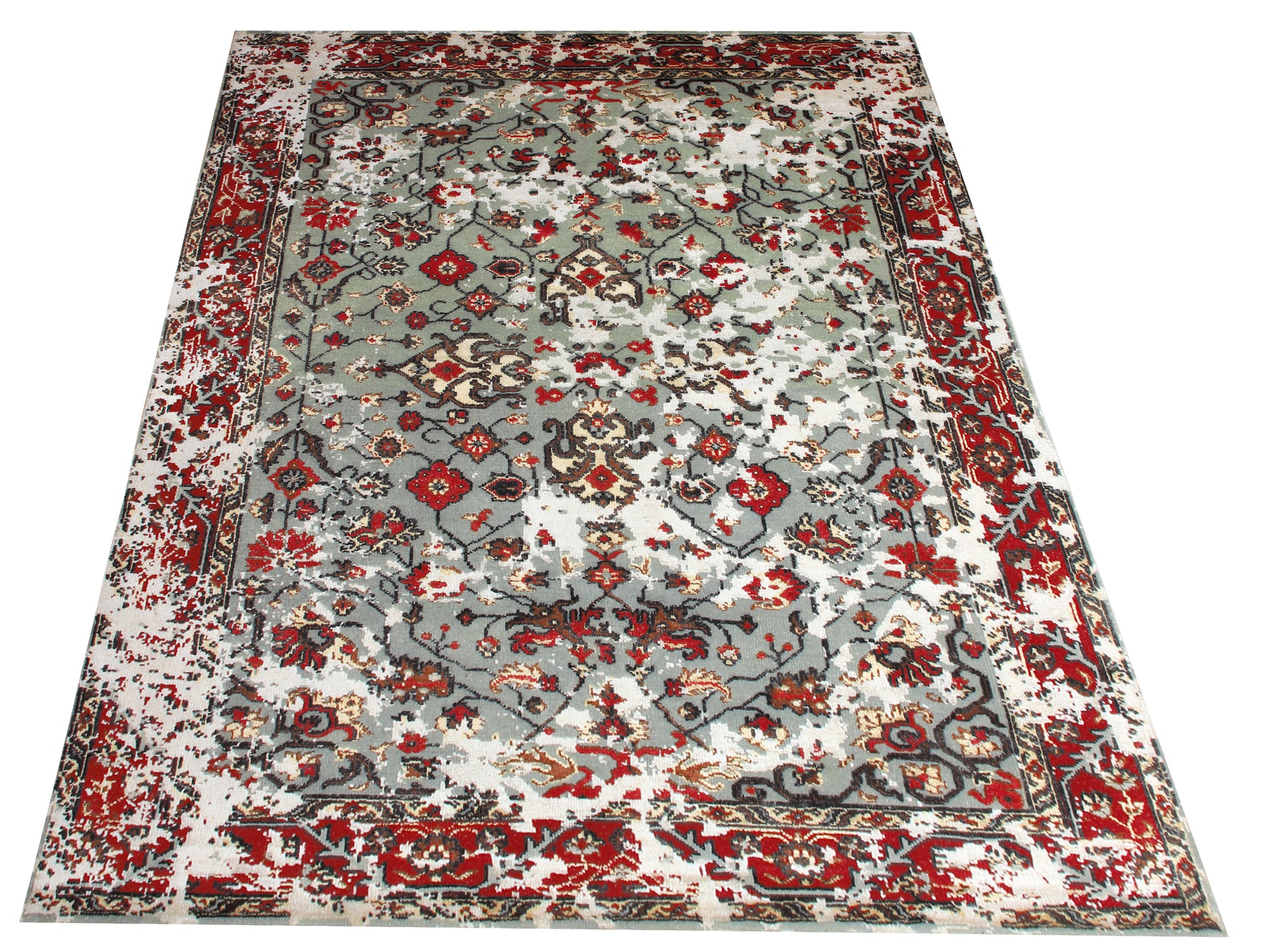 Vintage Antique Hand Knotted Persian 7.6x10 Area Rug - Grey Red Rust Wool Viscose Floral Distressed