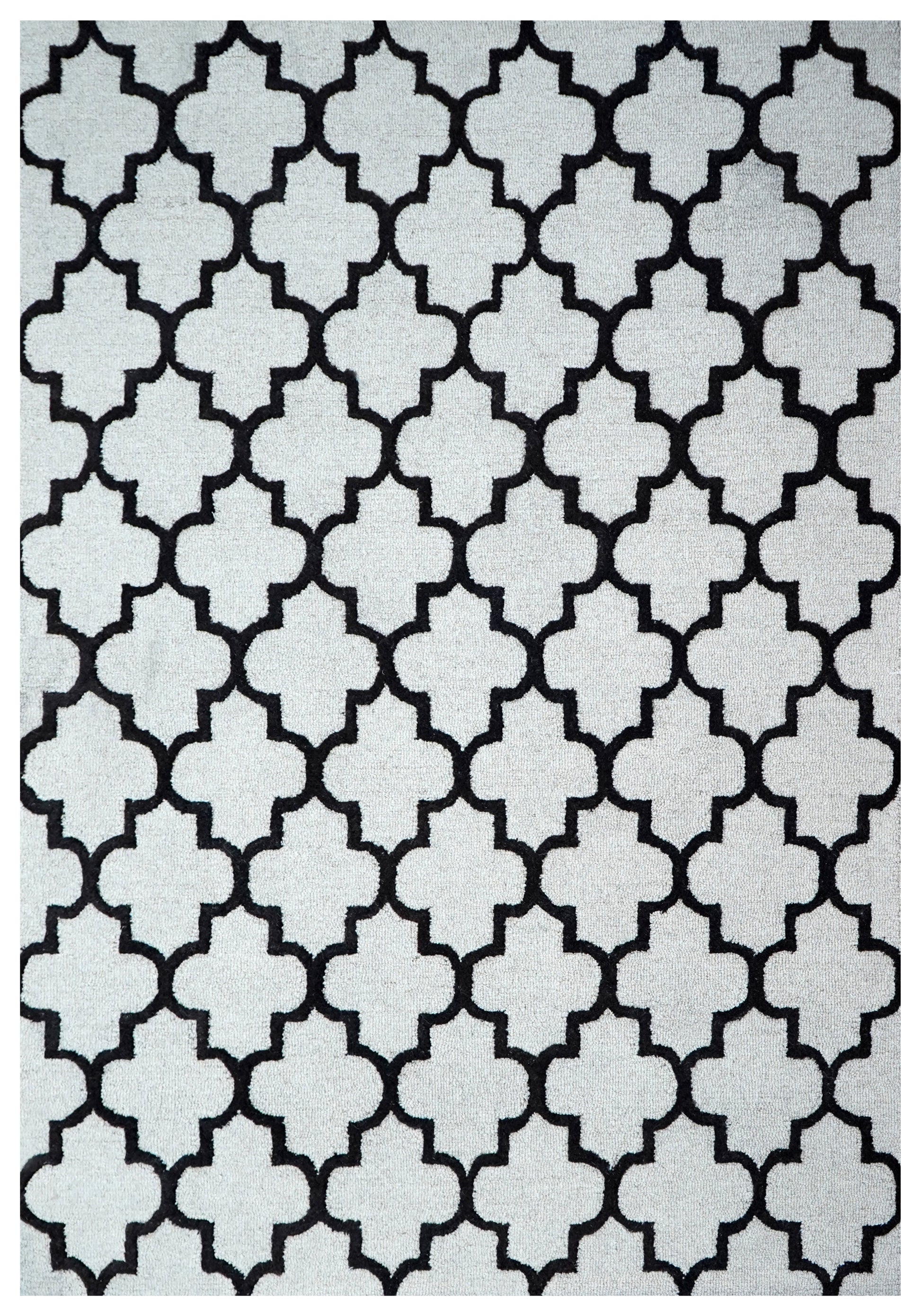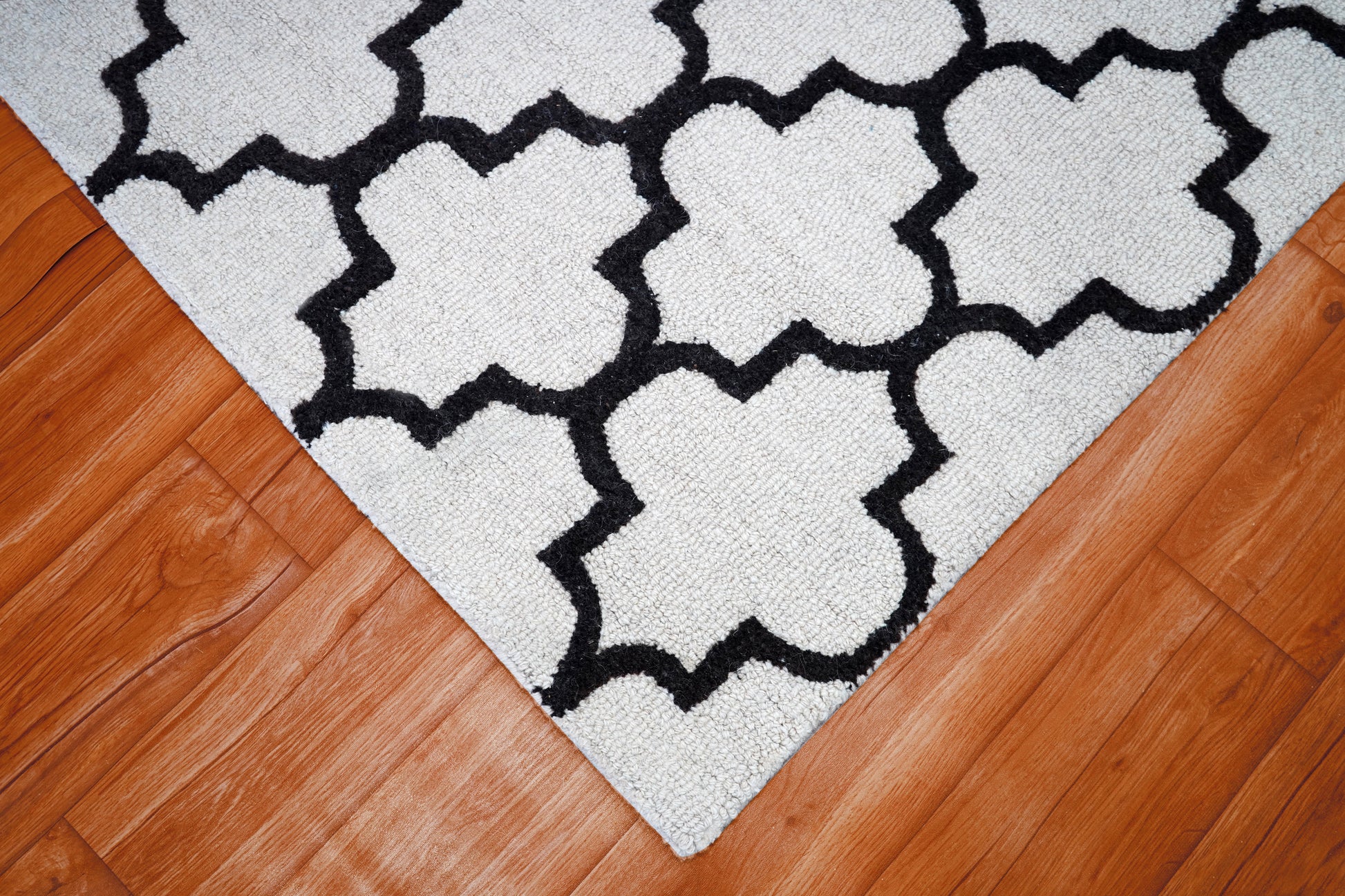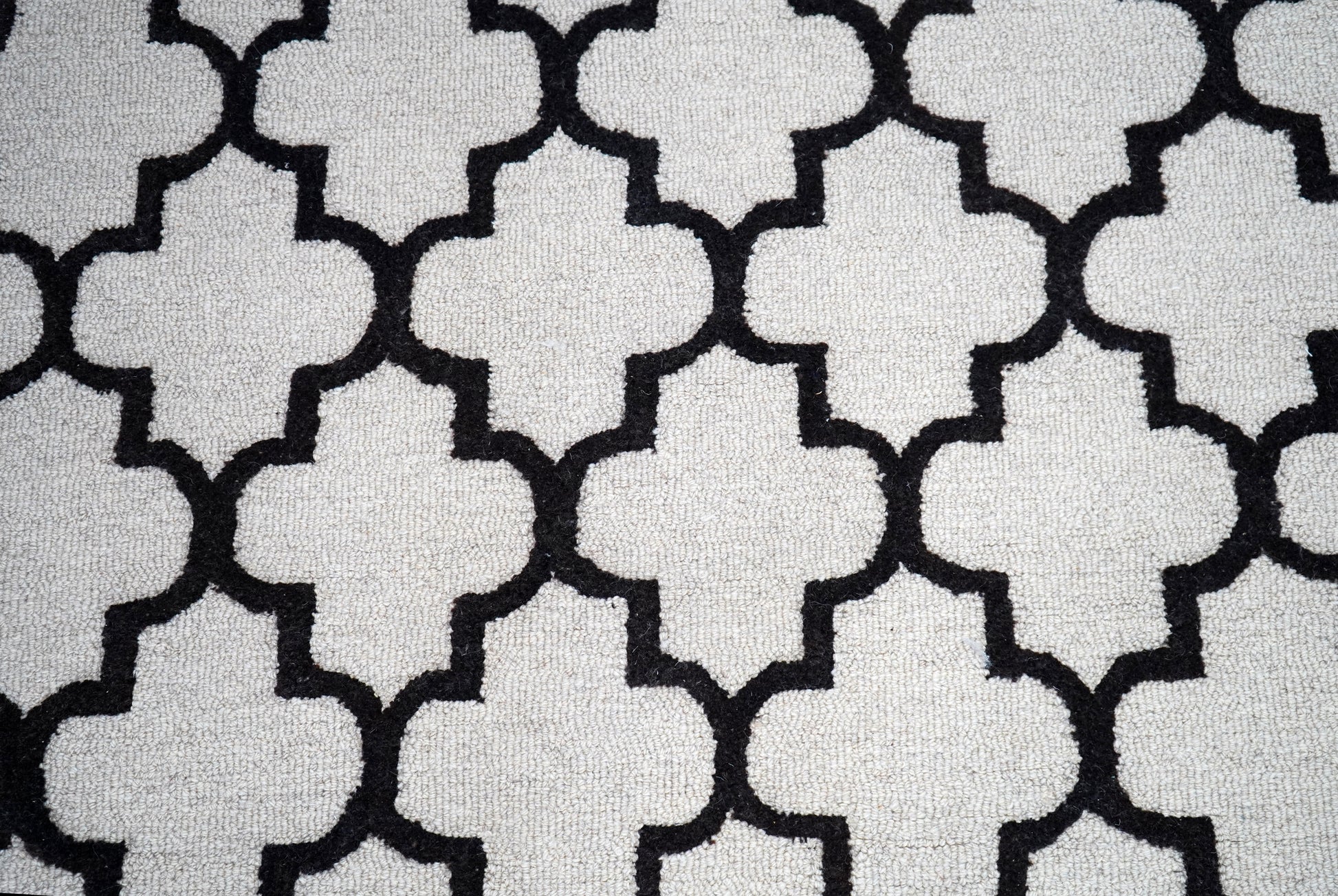 White Black Moroccan Trellis Hand Tufted Wool Area Rug - Cut Pile Geometric Custom Sizes