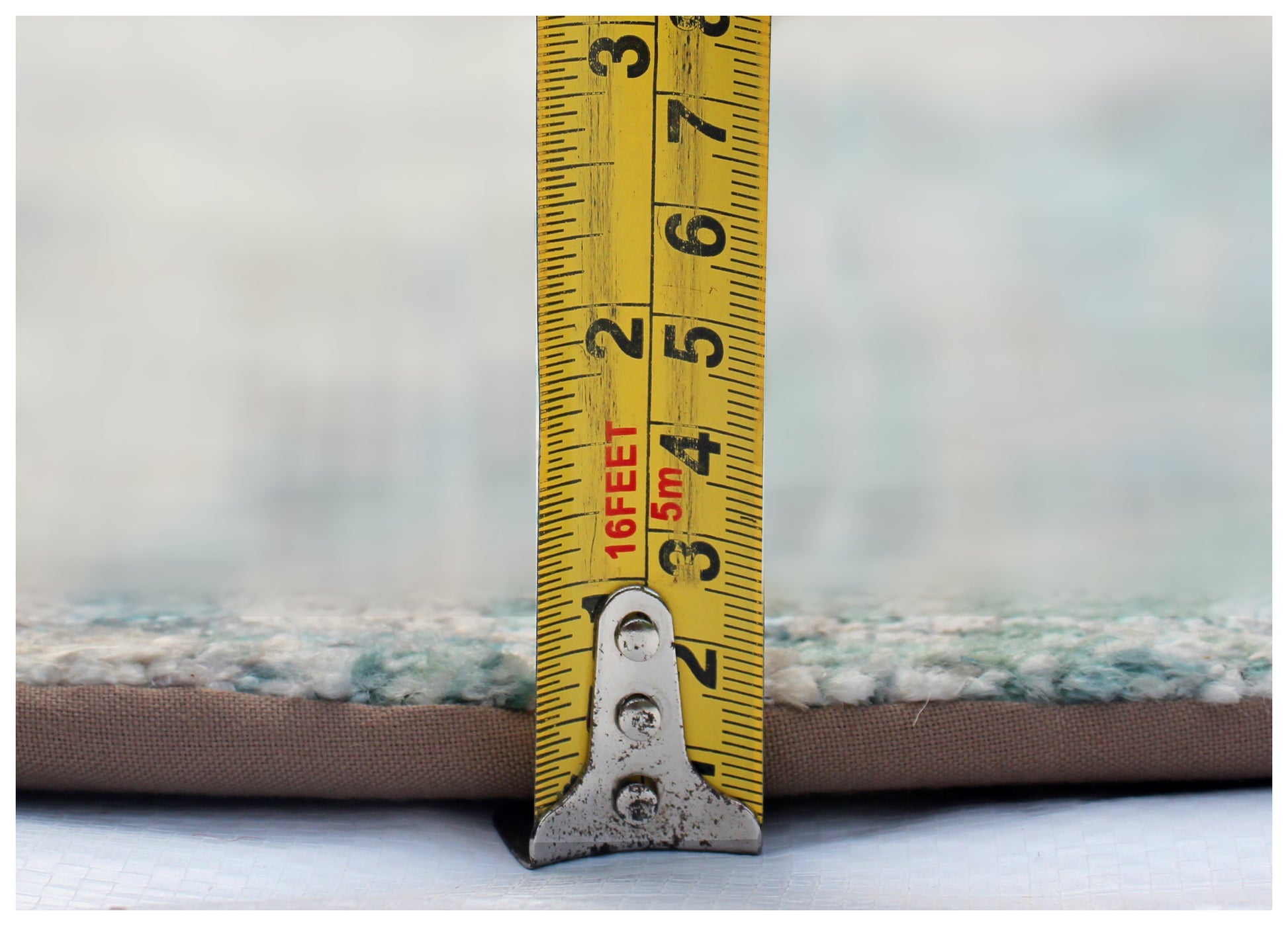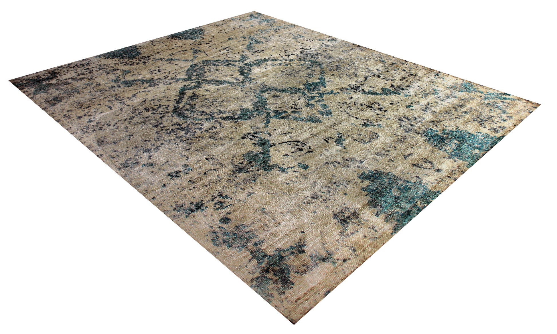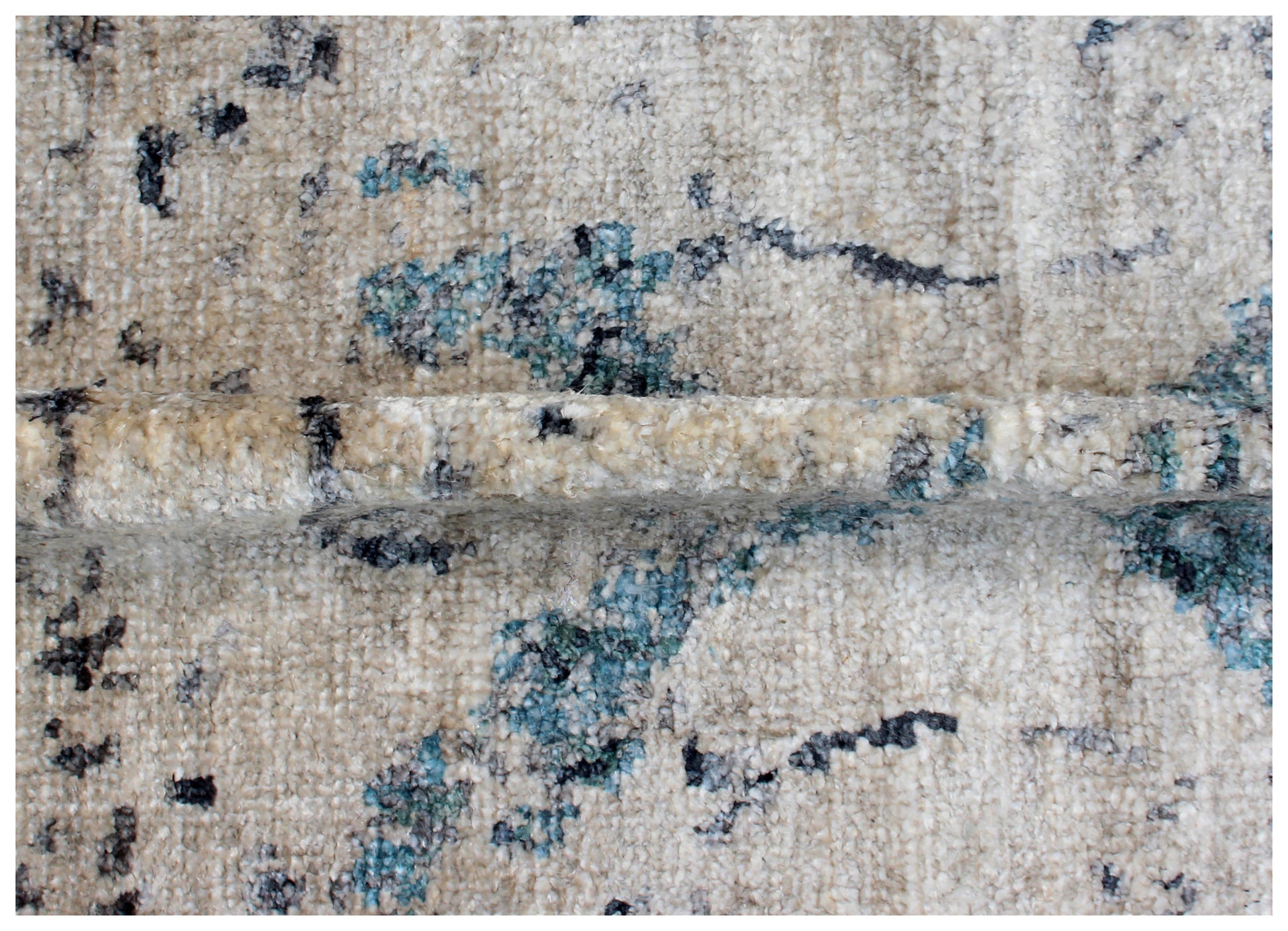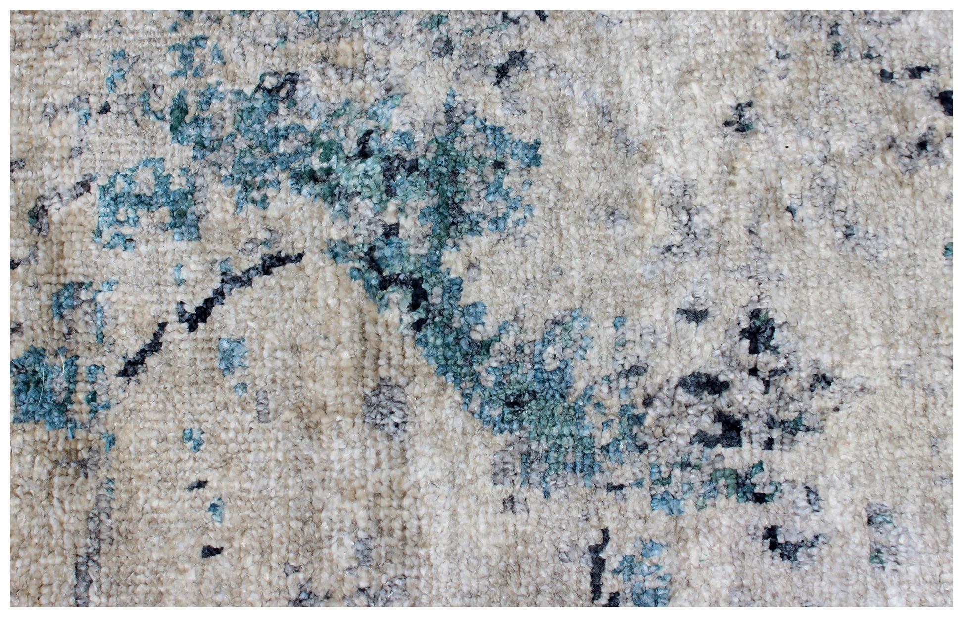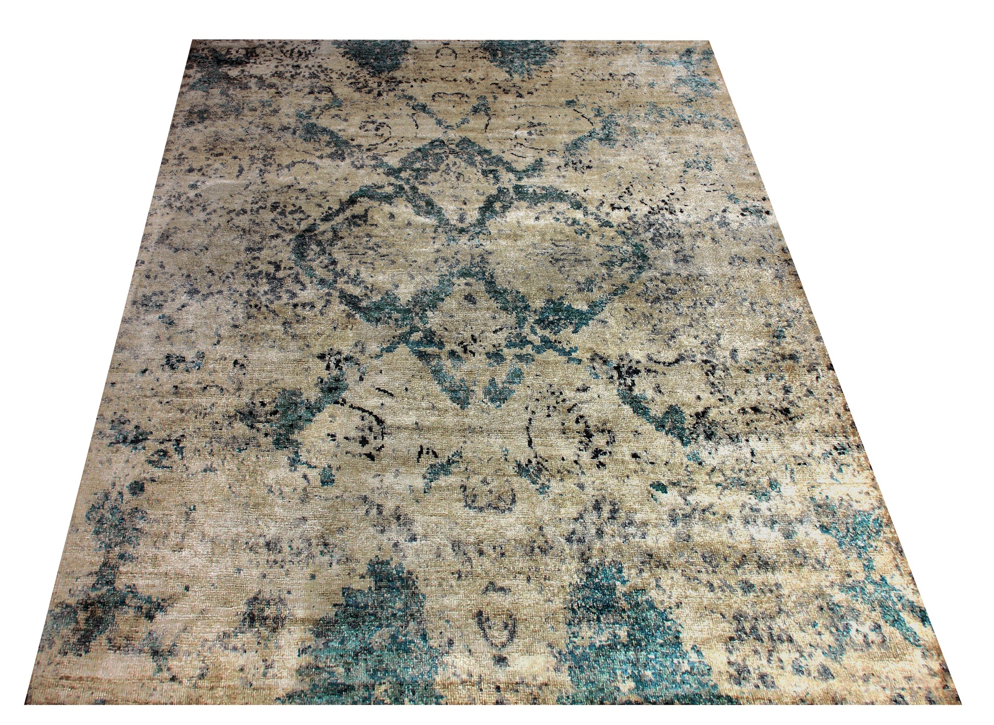 Wool Viscose Vintage Antique 8x9.6 Area Rug - Beige Teal Grey Hand Knotted Abstract Distressed